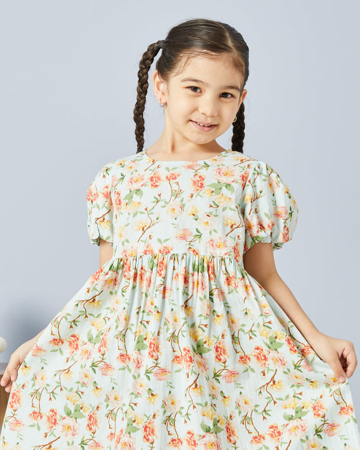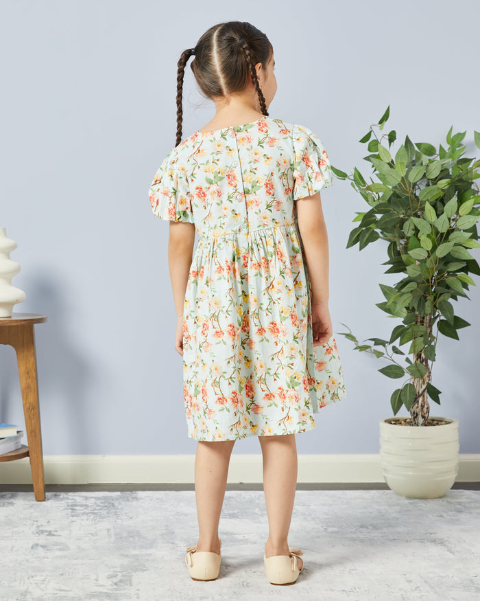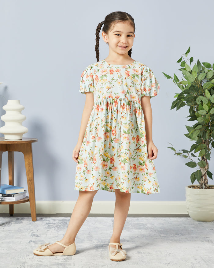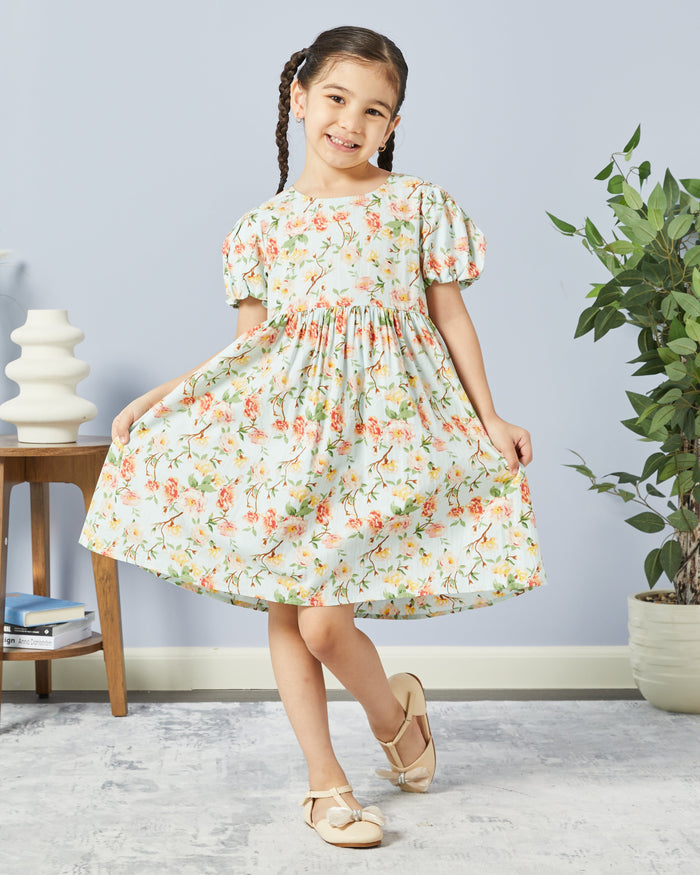 إطلالة منعشة وناعمة مع فستان مطبوع بالأزهار. تصميم خفيف ومريح يضفي لمسة أنثوية تناسب كل يوم.