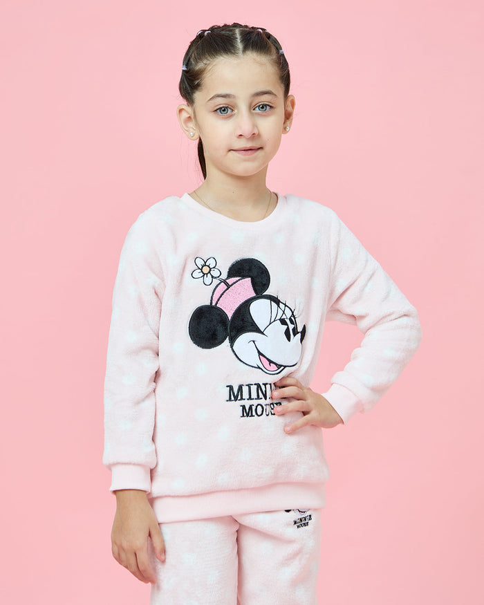 طقم بيجامة بتطريز ميني ماوس باللون الوردي للبنات الصغار (قطعتين)