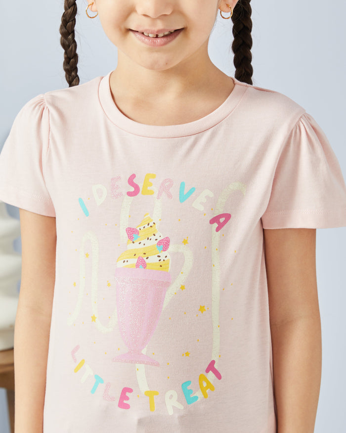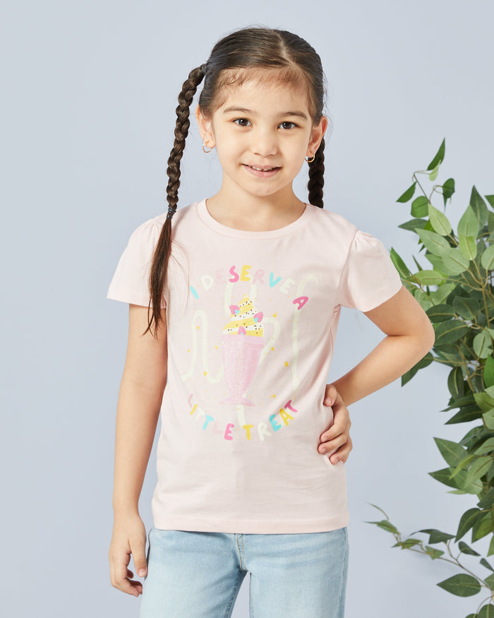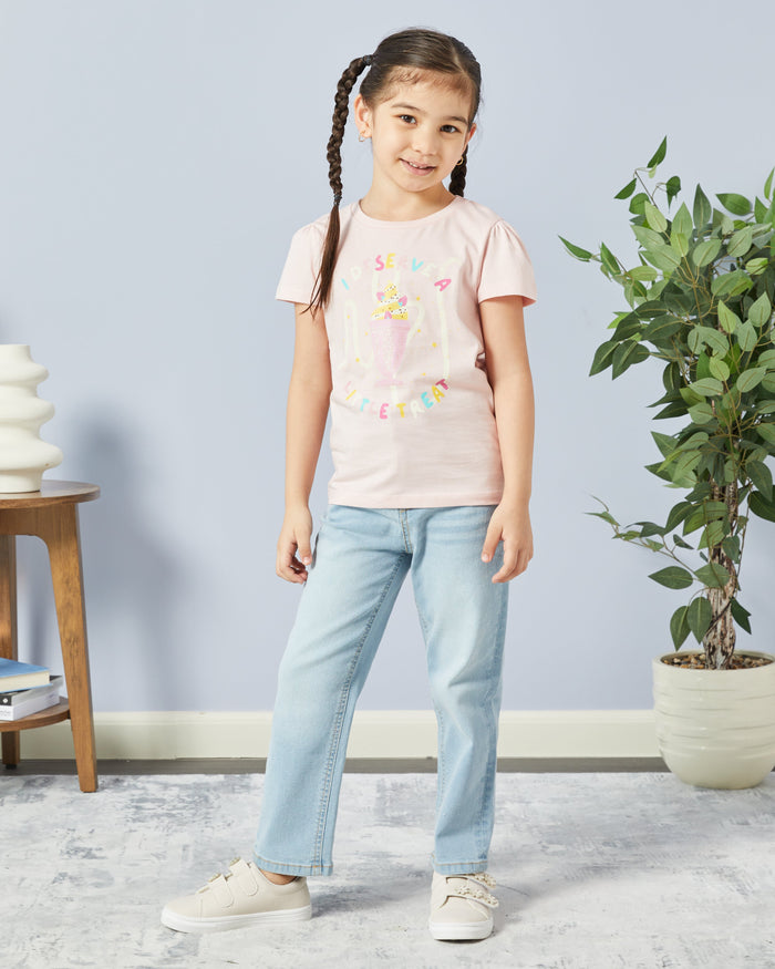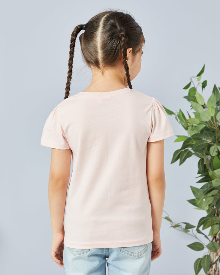 تيشيرت مطبوع باللون الوردي للبنات الصغار