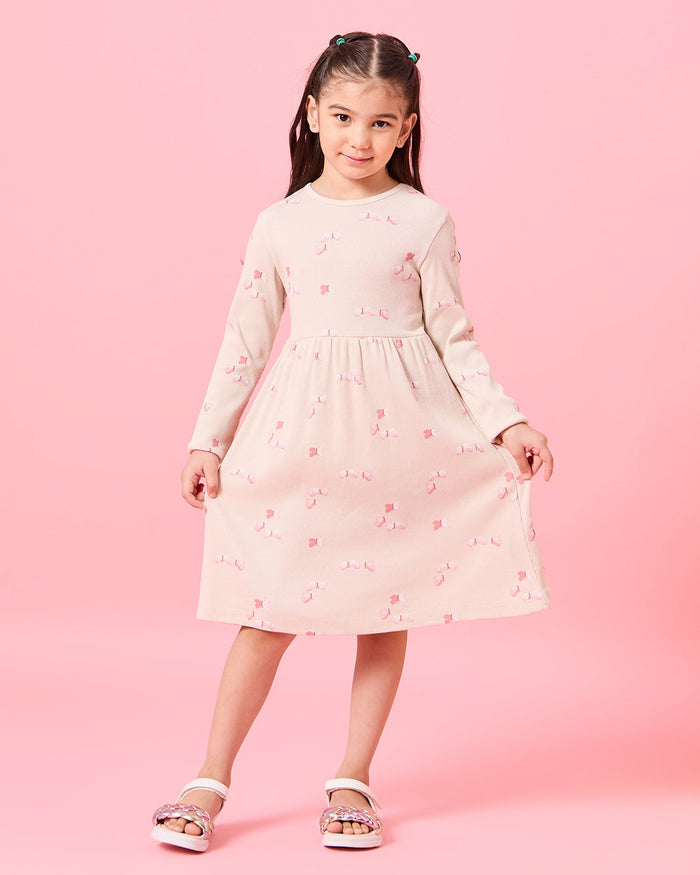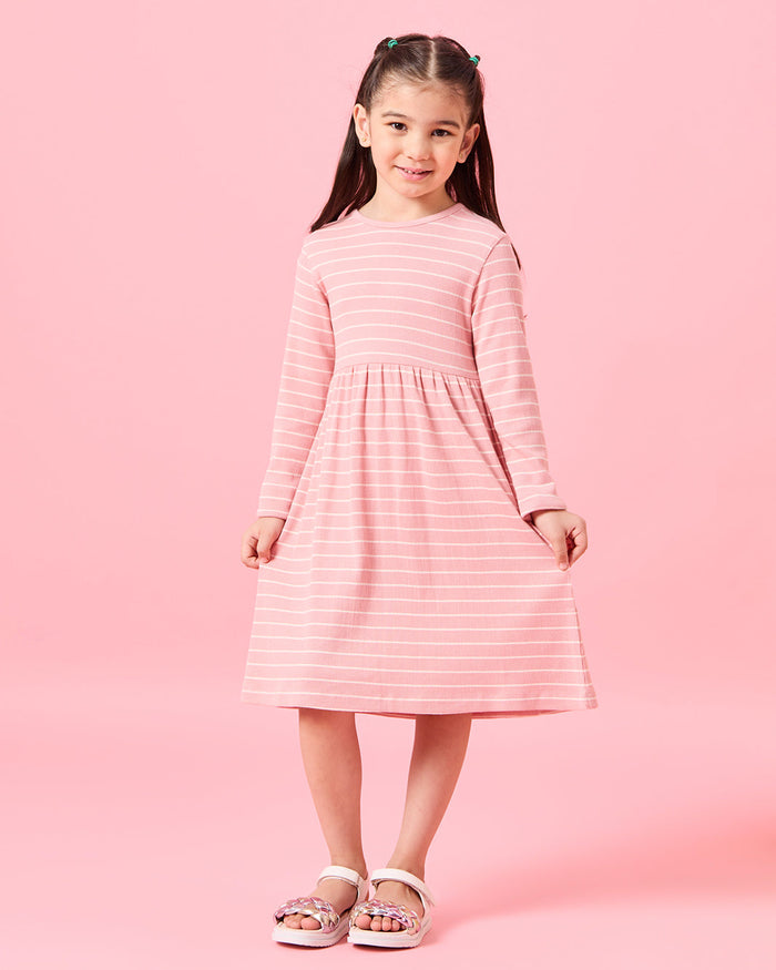 طقم فستان باللون الوردي للبنات الصغار (قطعتين)