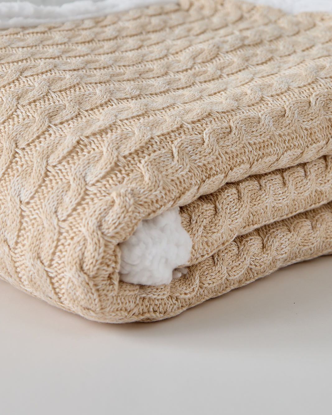بطانية محبوكة بملمس بارز باللون البيج لحديثي الولادة