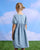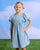 فستان دينيم مطبوع باللون الأزرق للبنات الصغار