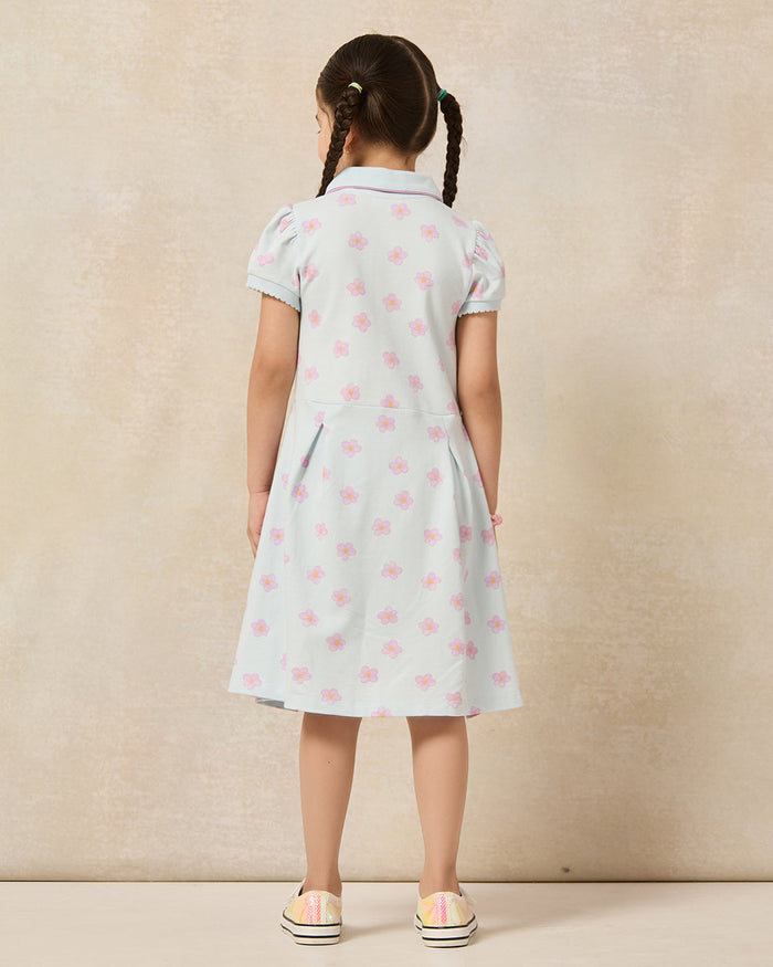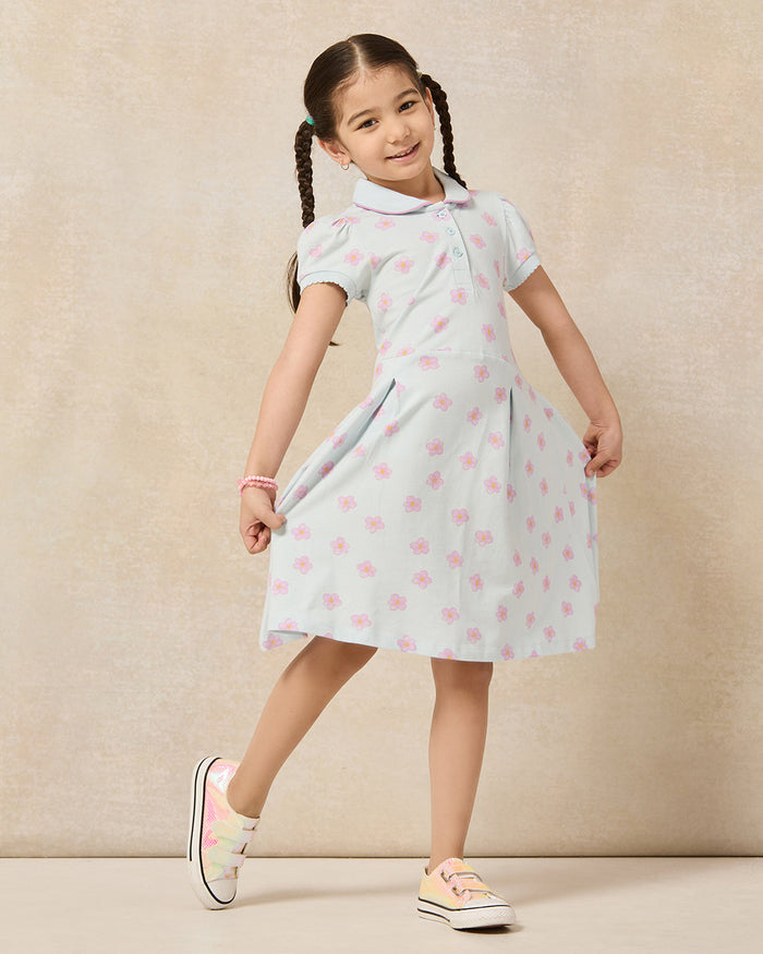 فستان بياقة باللون الأزرق للبنات الصغار