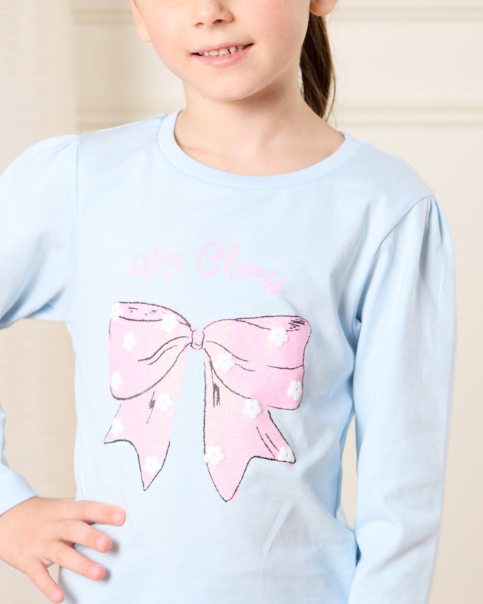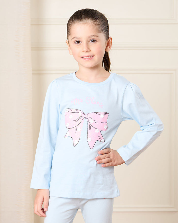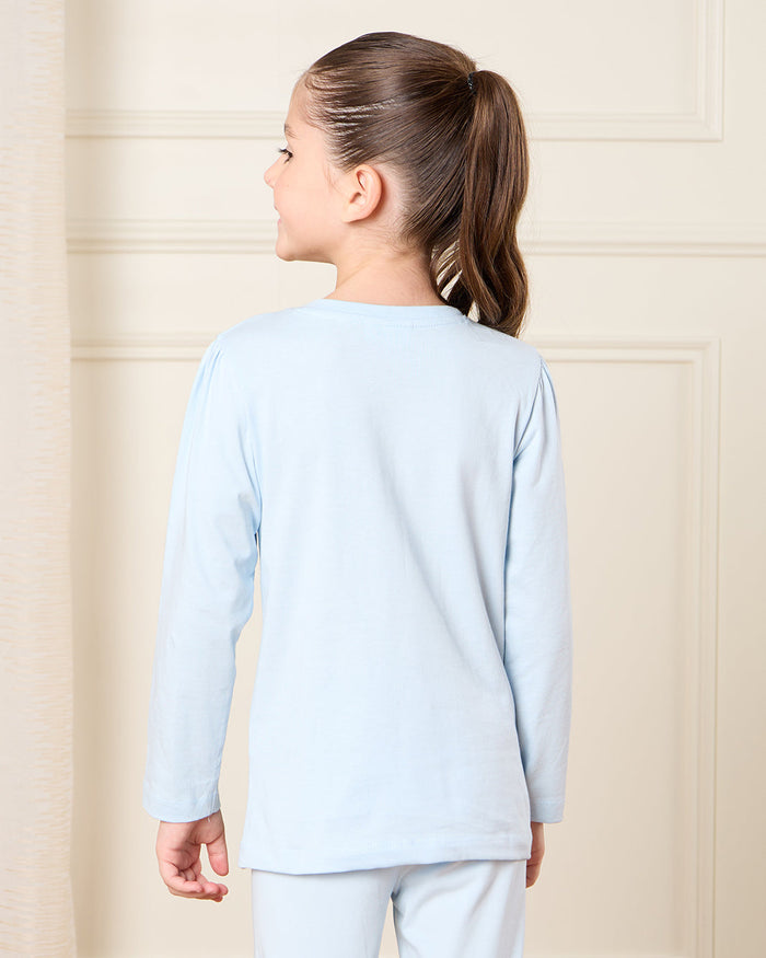 تيشيرت بطبعة باللون الأزرق للبنات الصغار