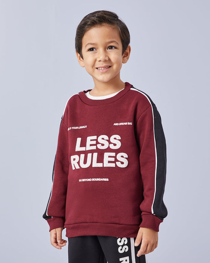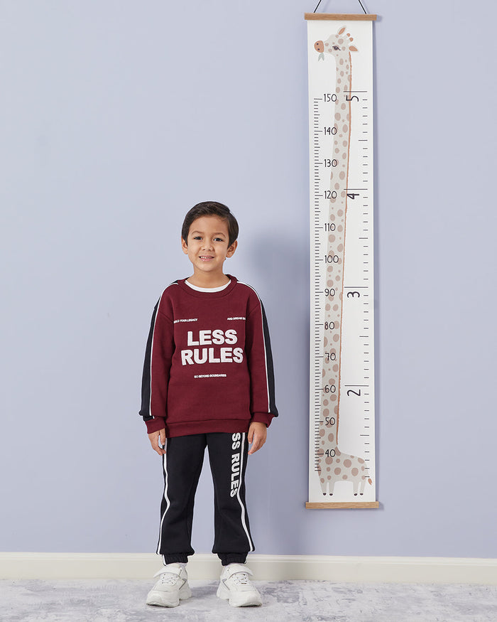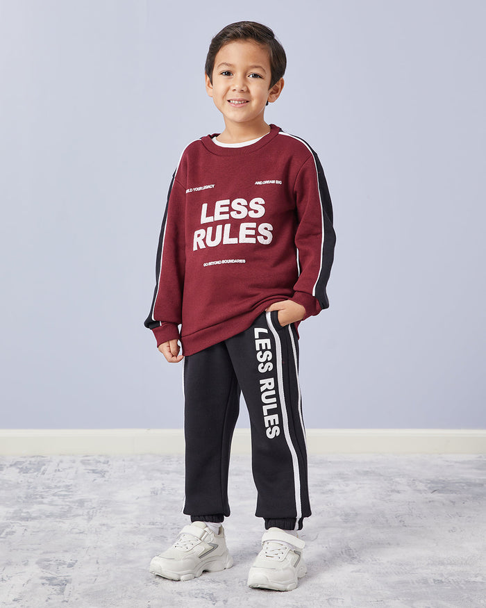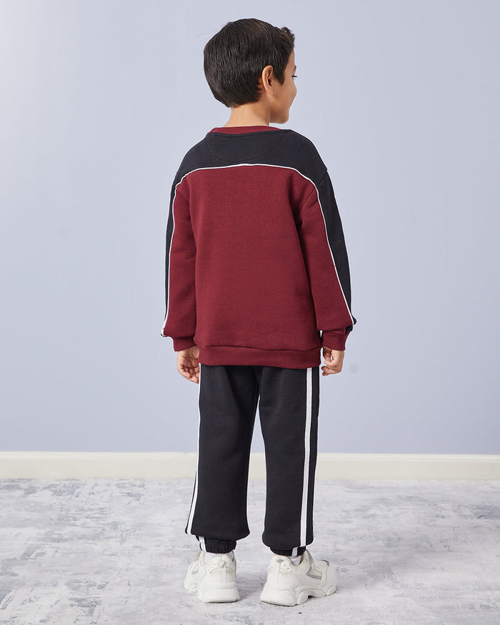 طقم رياضي مطبوع باللون الأحمر الداكن والأسود للأولاد الصغار (قطعتين)