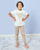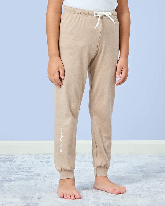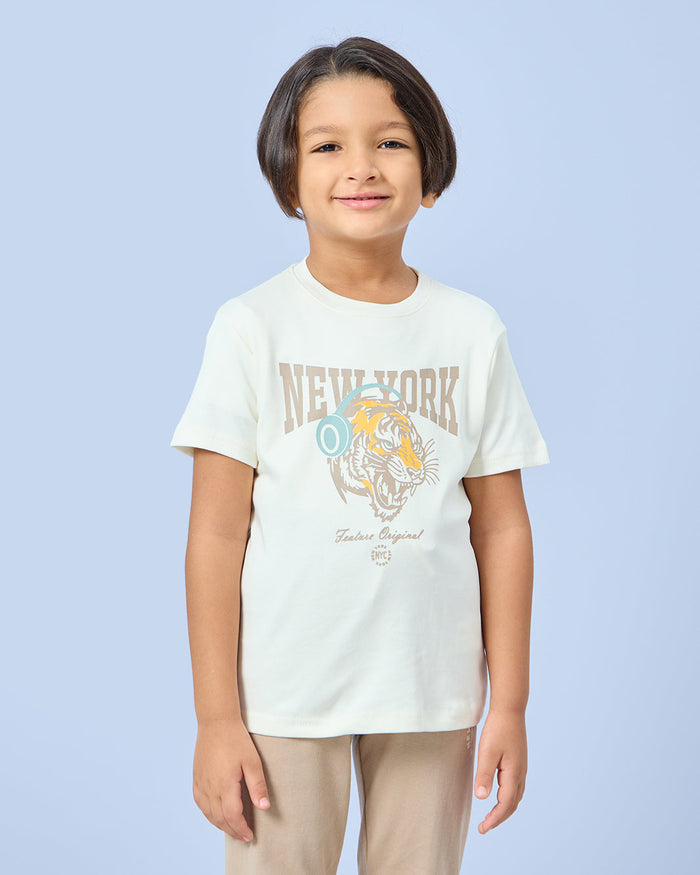 طقم بيجامة مطبوع باللون الكريمي للأولاد الصغار (قطعتين)