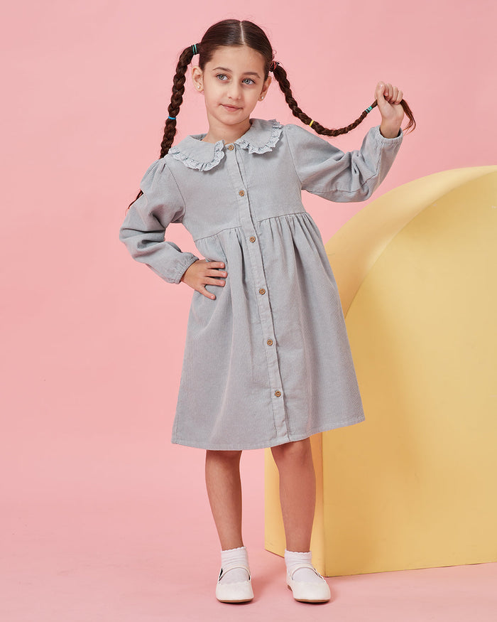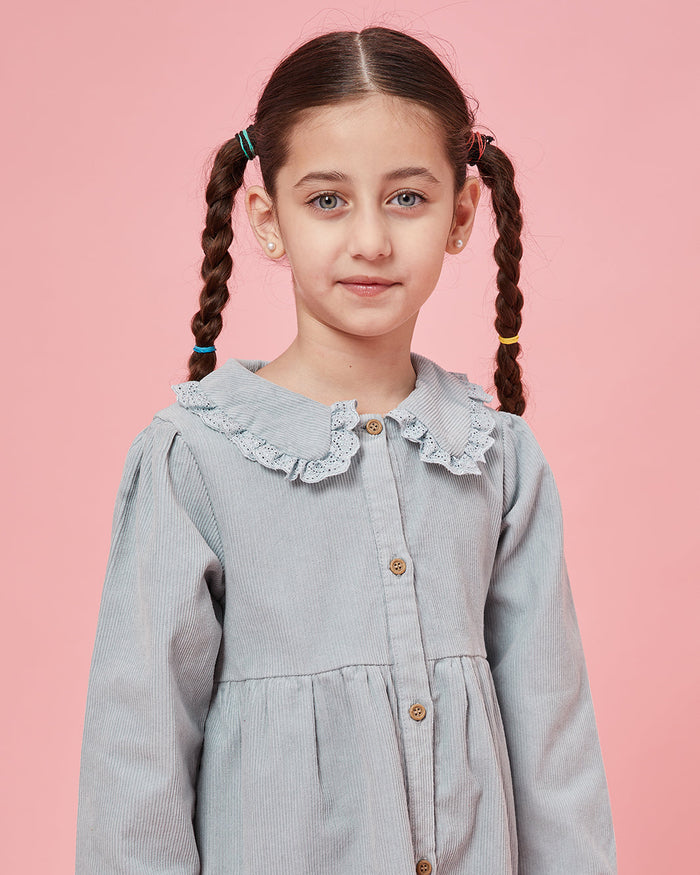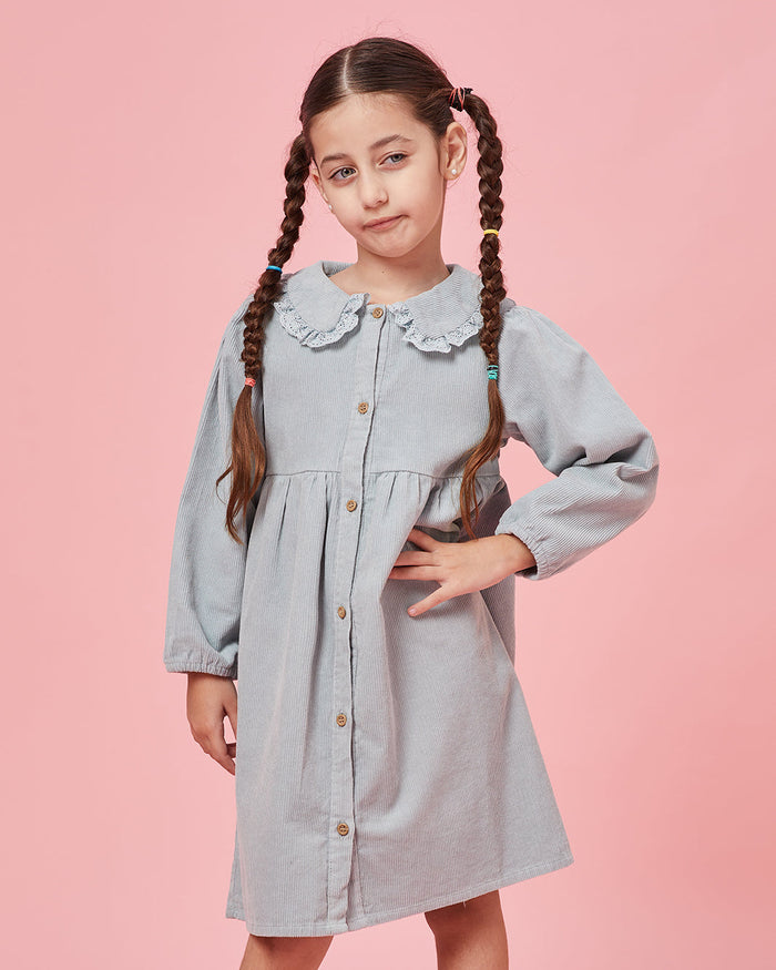 فستان للبنات بياقة أنيقة بتصميم كلاسيكي ساحر وراحة تدوم طوال اليوم. مثالي للمدرسة أو اللقاءات أو المشاوير المميزة.