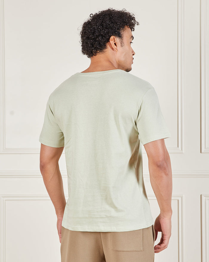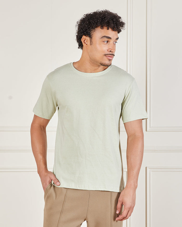 تيشيرت كلاسيكي باللون الأخضر الفاتح، مصنوع من قماش ناعم يمنحك راحة مثالية للاستخدام اليومي. يتميز برقبة دائرية وأكمام قصيرة، مناسب للارتداء بمفرده أو مع طبقات لإطلالة كاجوال.
