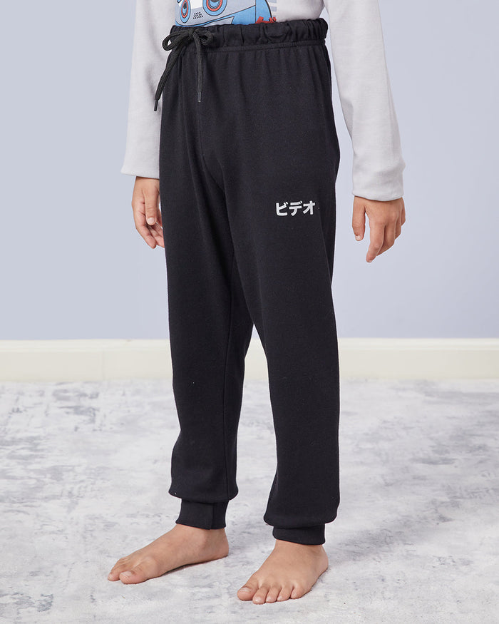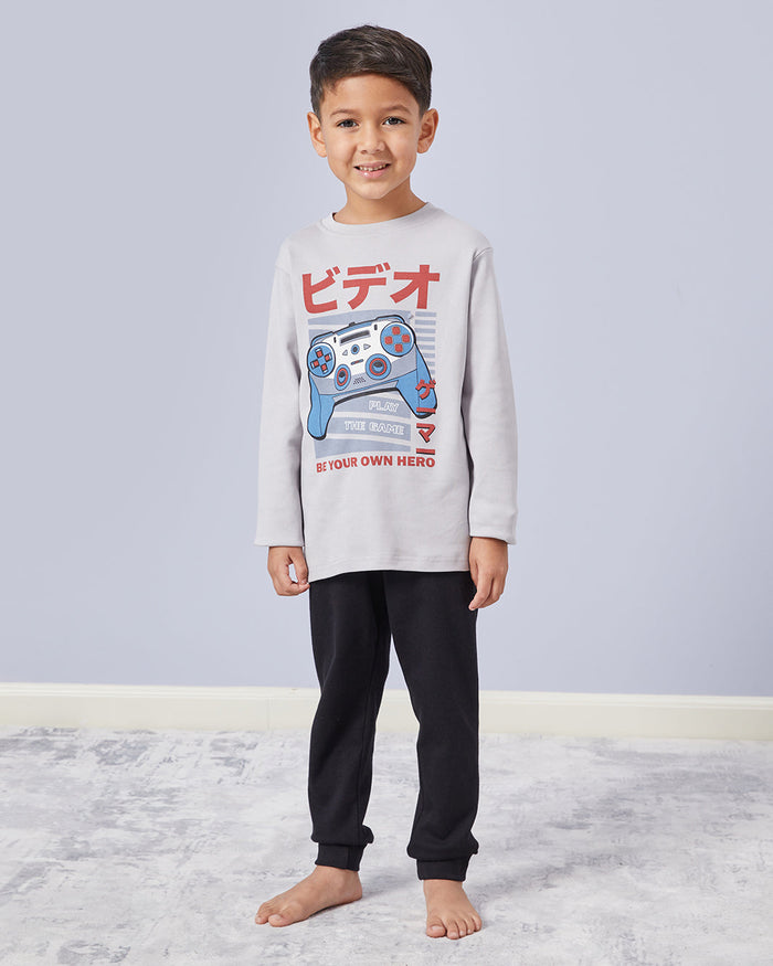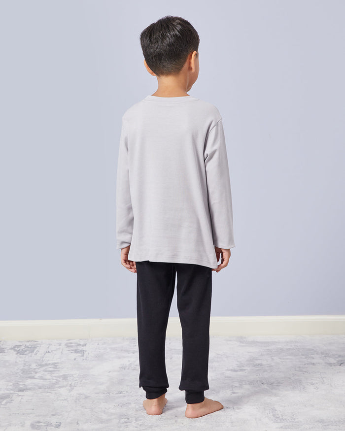 طقم بيجامة بطبعة باللون الأسود والرمادي للأولاد الصغار (قطعتين)