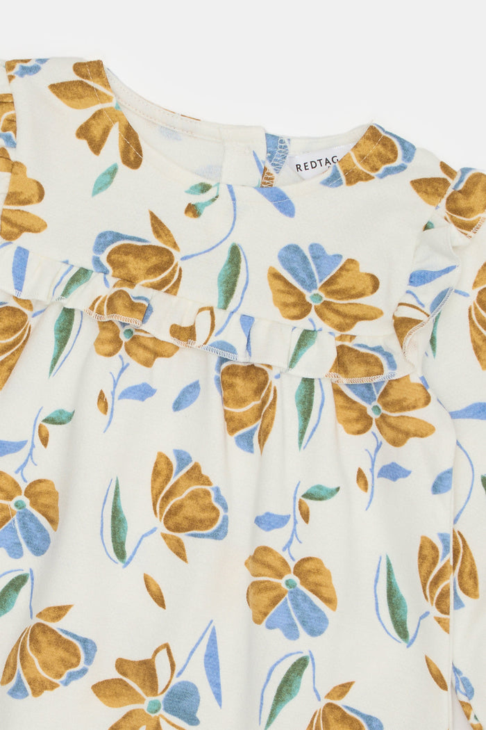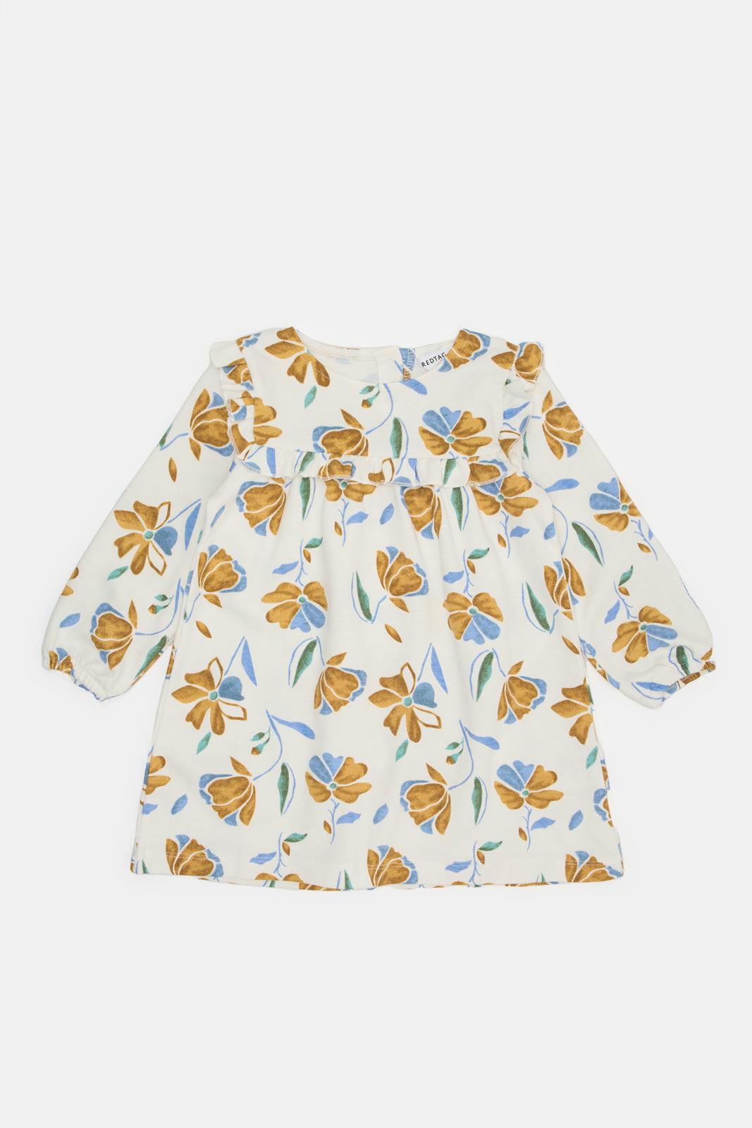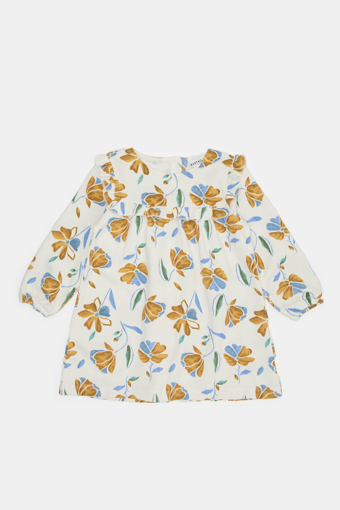 فستان مطبوع باللون العاجي للبنات الرضّع