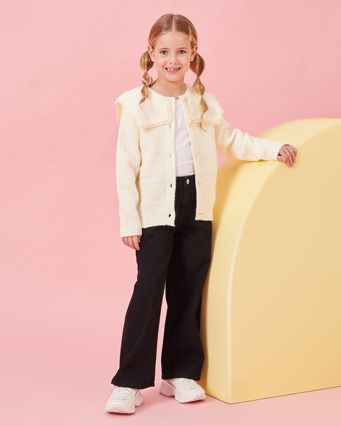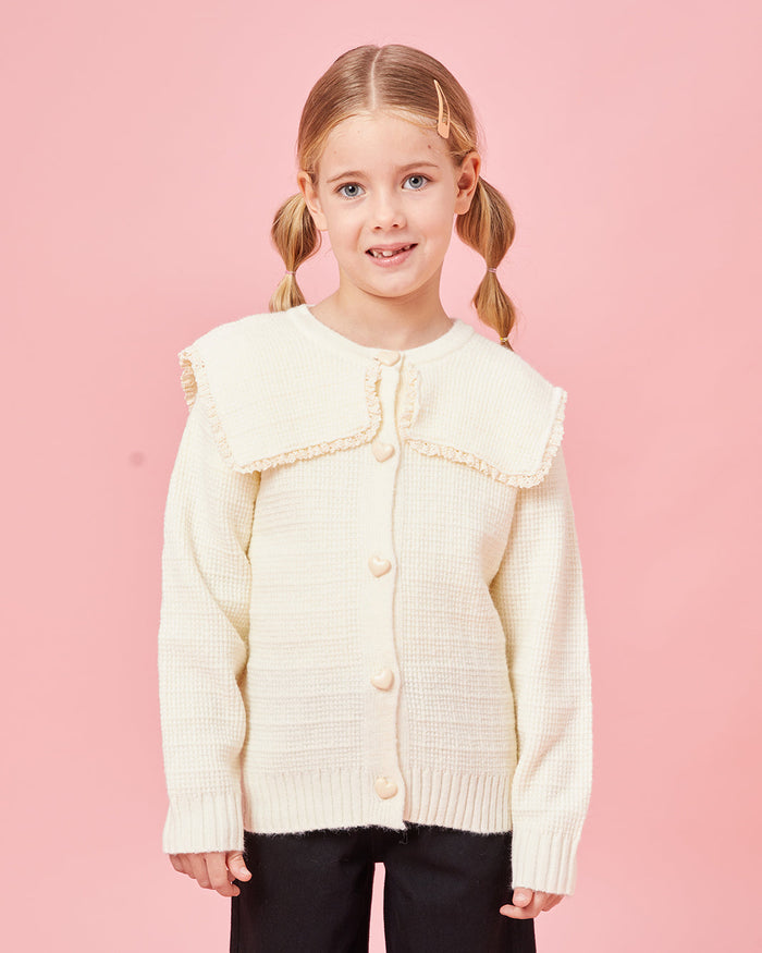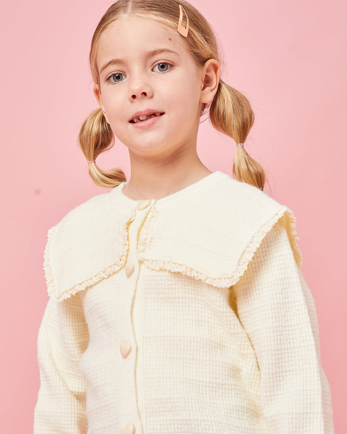 كارديغان بأزرار بياقة باللون العاجي للبنات الصغار