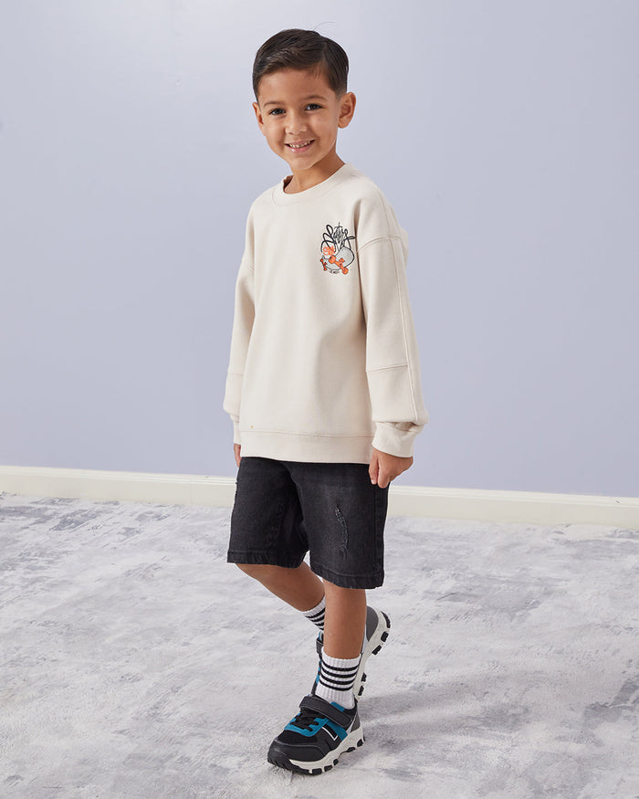 قطعة أساسية في خزانة كل فتى، سويتر مريح وأنيق بتصميم بسيط يناسب جميع الإطلالات. مصنوع من قماش ناعم يسمح بمرور الهواء مع أطراف وأساور مضلعة لتوفير ثبات وراحة مثالية. مناسب للمدرسة أو الأيام الباردة.