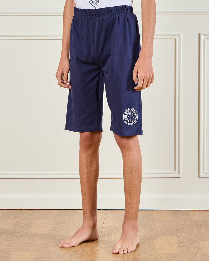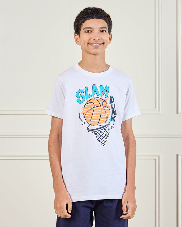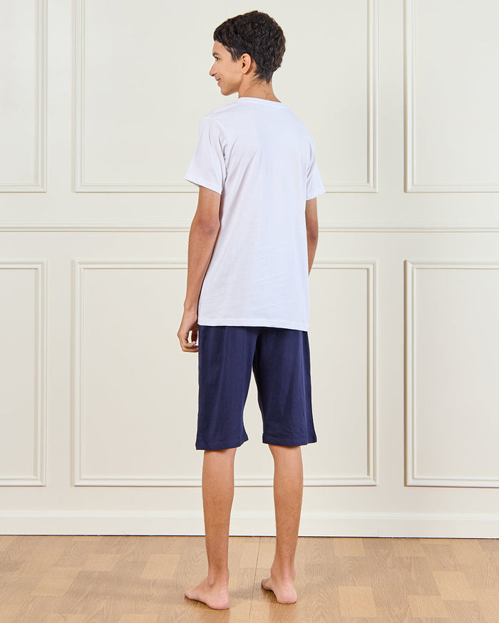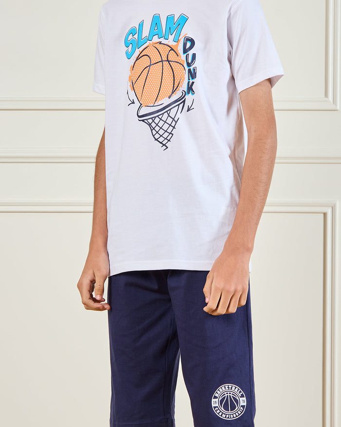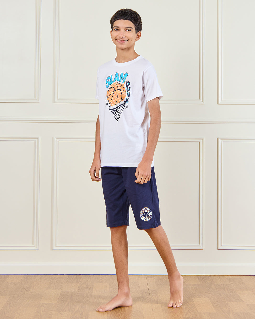 طقم بيجامة مطبوع باللون أبيض للأولاد الكبار (قطعتين)