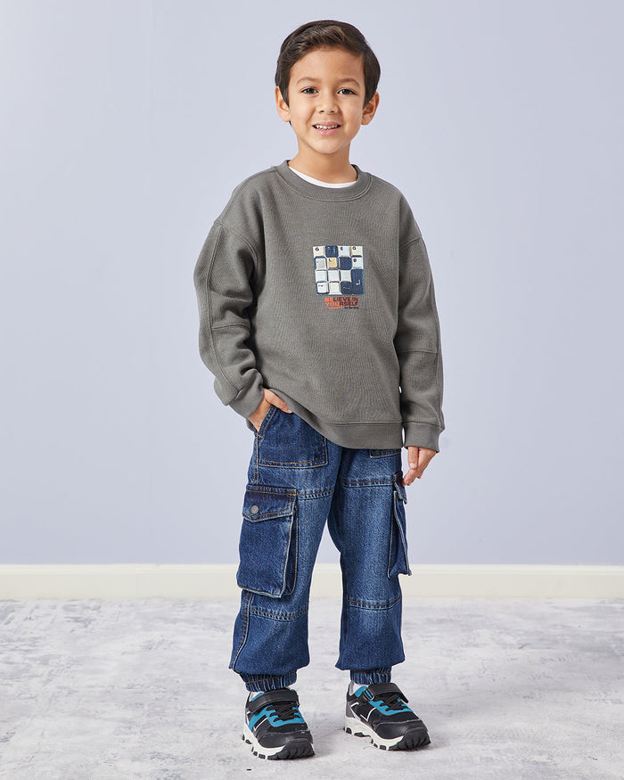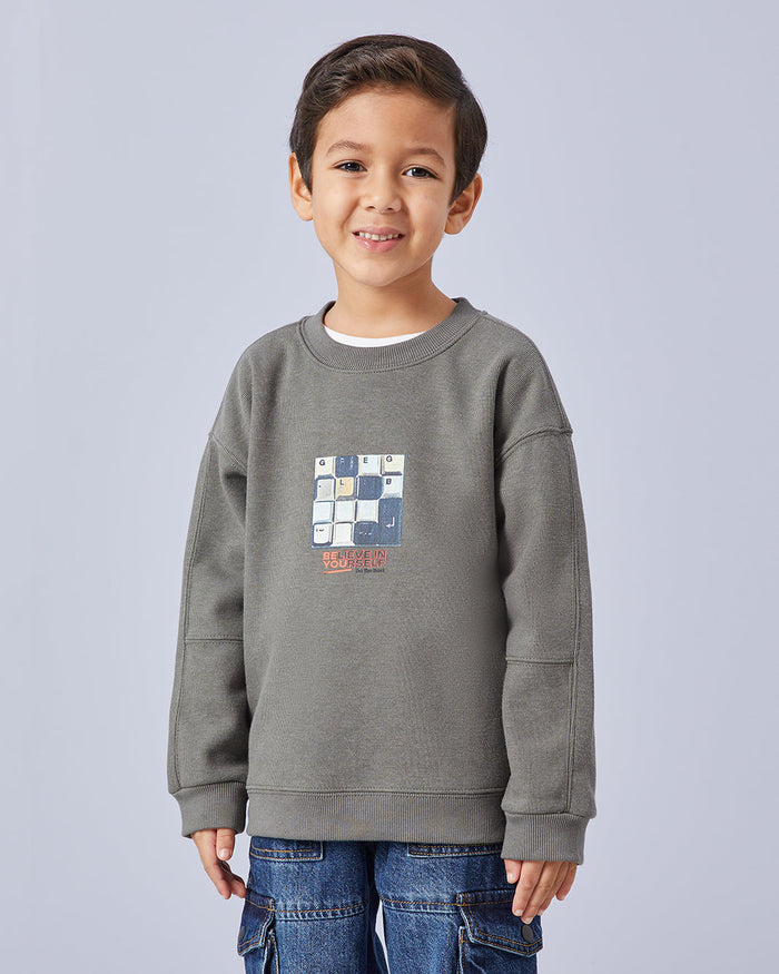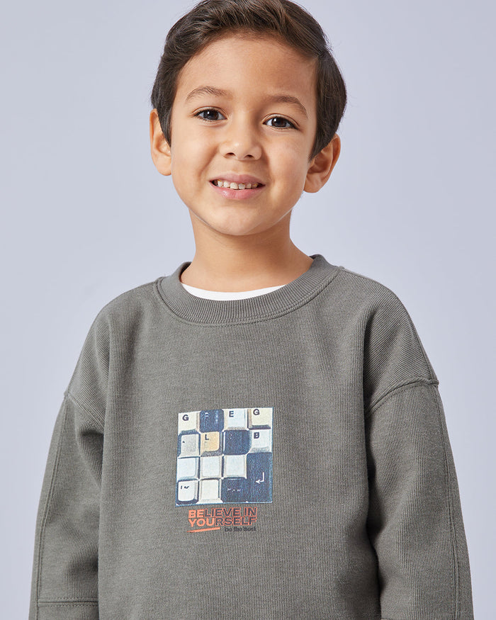 سويتشيرت باللون الزيتي للأولاد الصغار
