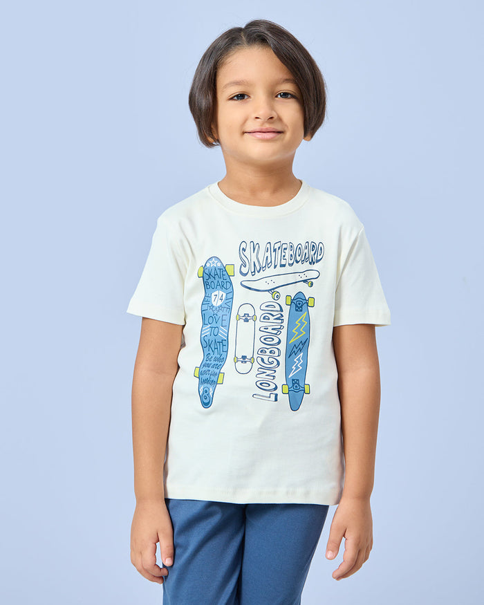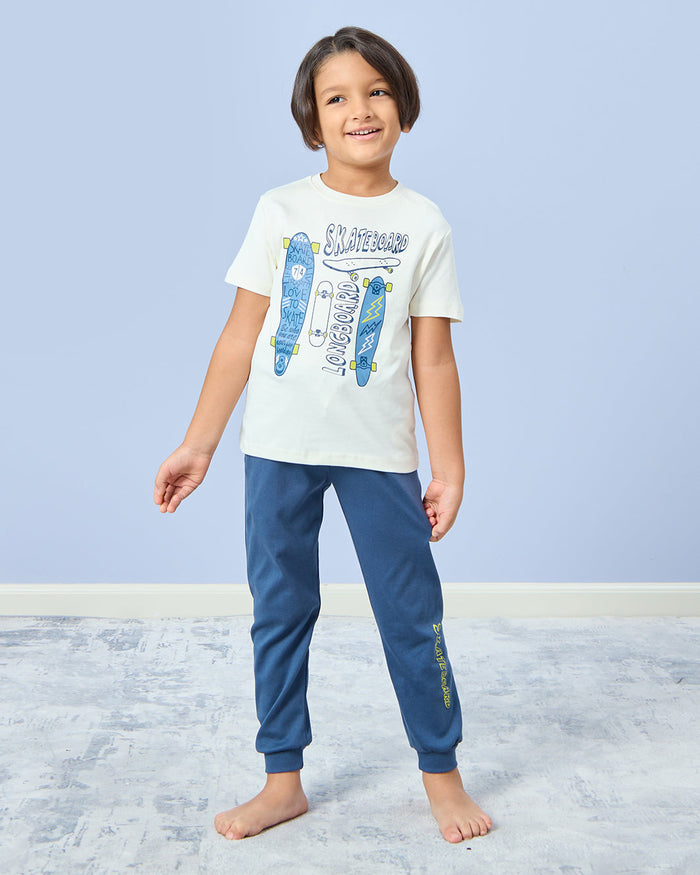 Boys White Skateboard Print Pyjama Set (2 Piece)