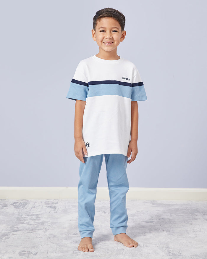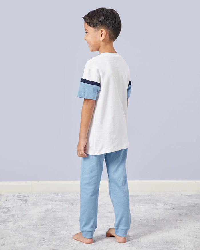 طقم بيجامة باللون الأبيض والأزرق للأولاد الصغار (قطعتين)