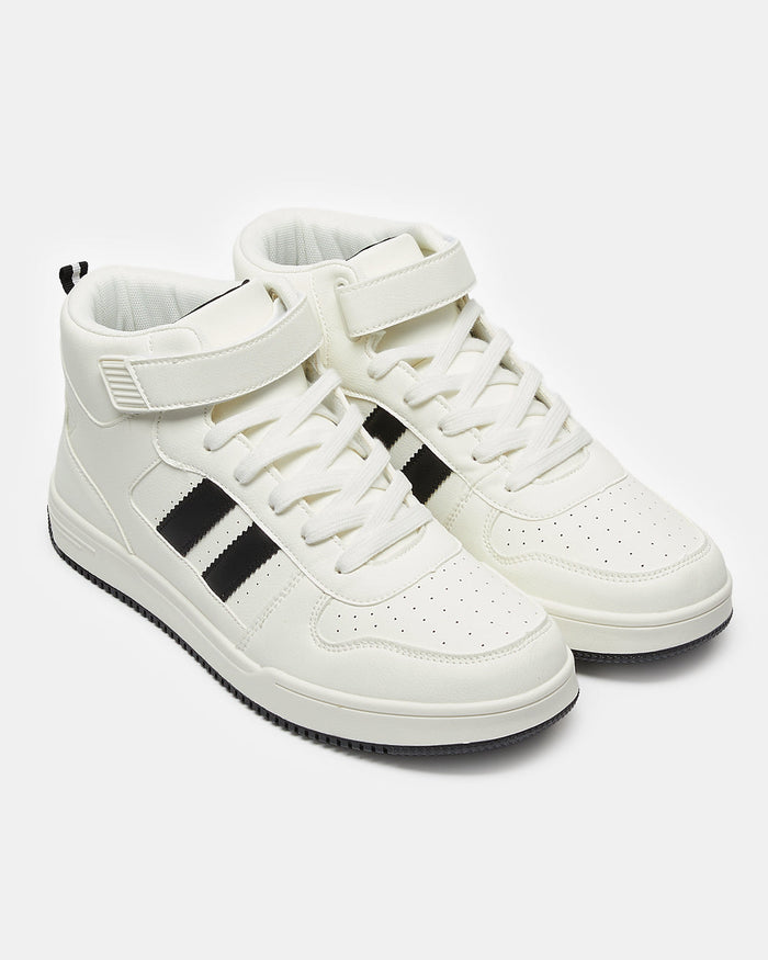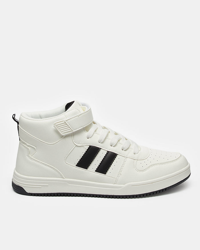 حذاء رياضي برقبة عالية باللون الأبيض للرجال