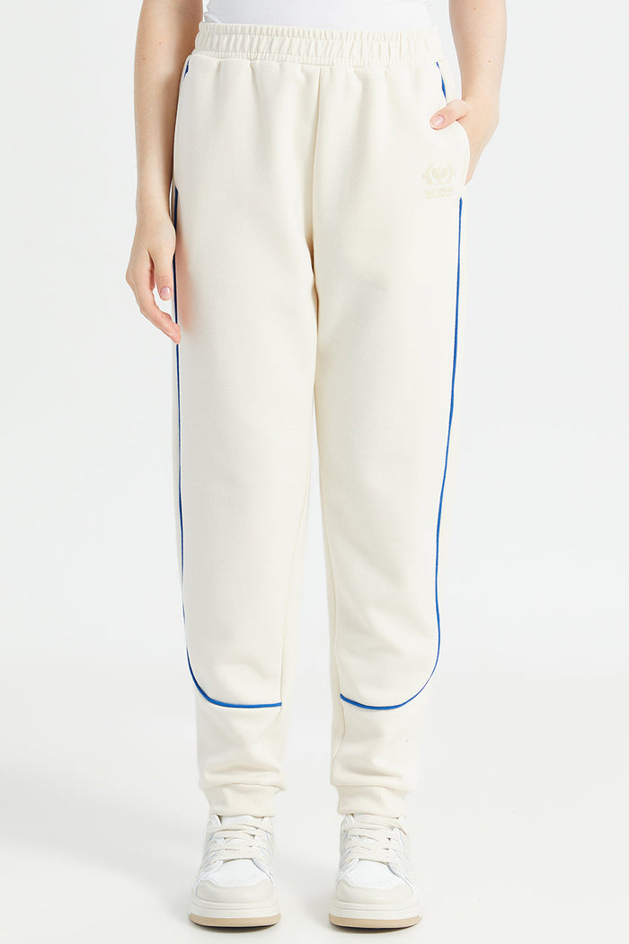Senior Girls White Embellished Jogger Set (2 Piece)