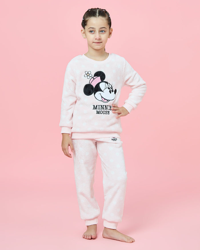 Bring smiles to bedtime with this pink Minnie fleece pyjama set. The charming Minnie embroidery adds a playful touch, while the soft fleece keeps her warm and cosy all night. Designed for comfort and cuteness in equal measure.