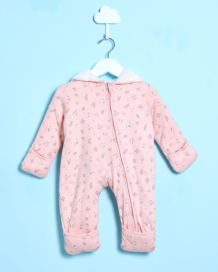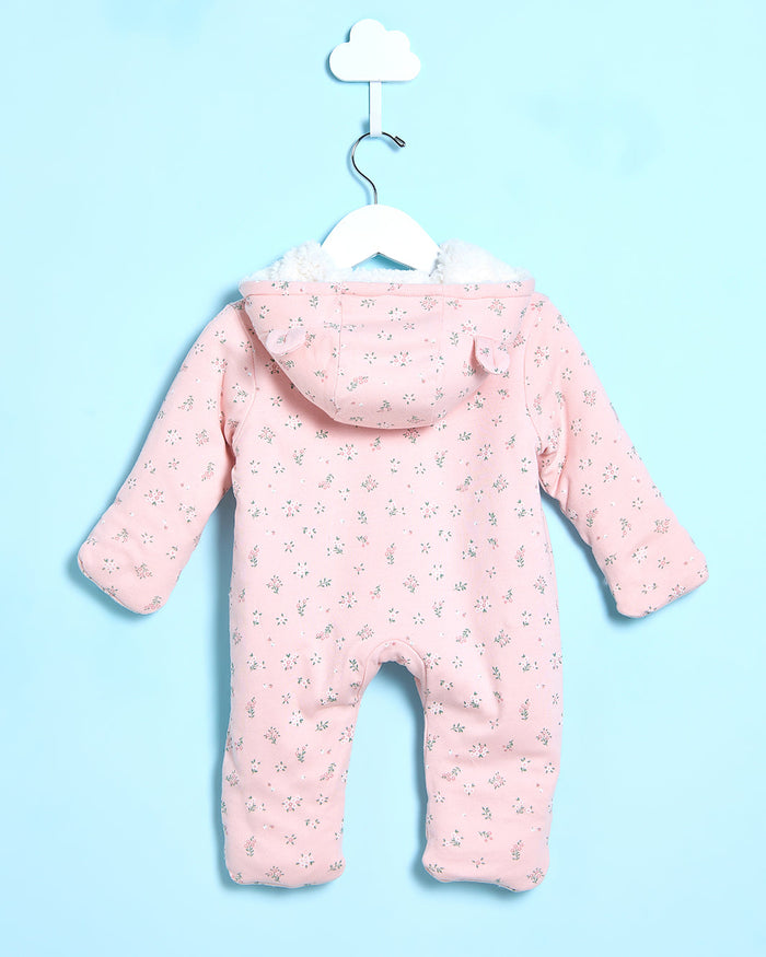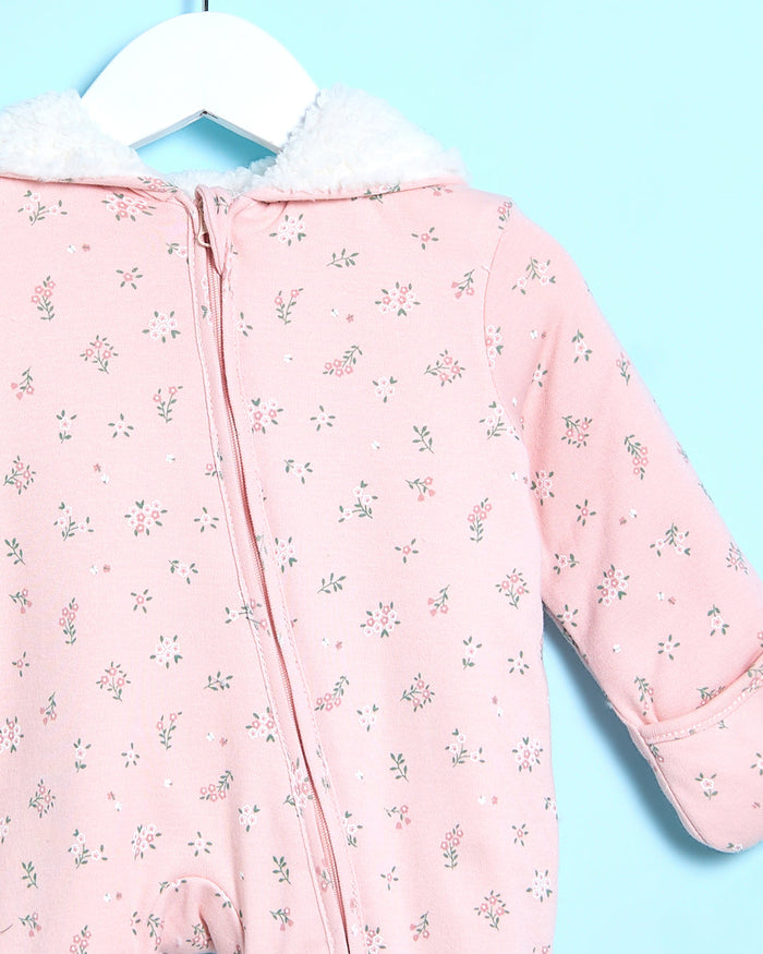 Baby Pink Floral Print Fluffy Hooded Coat