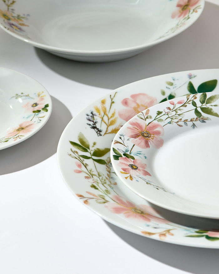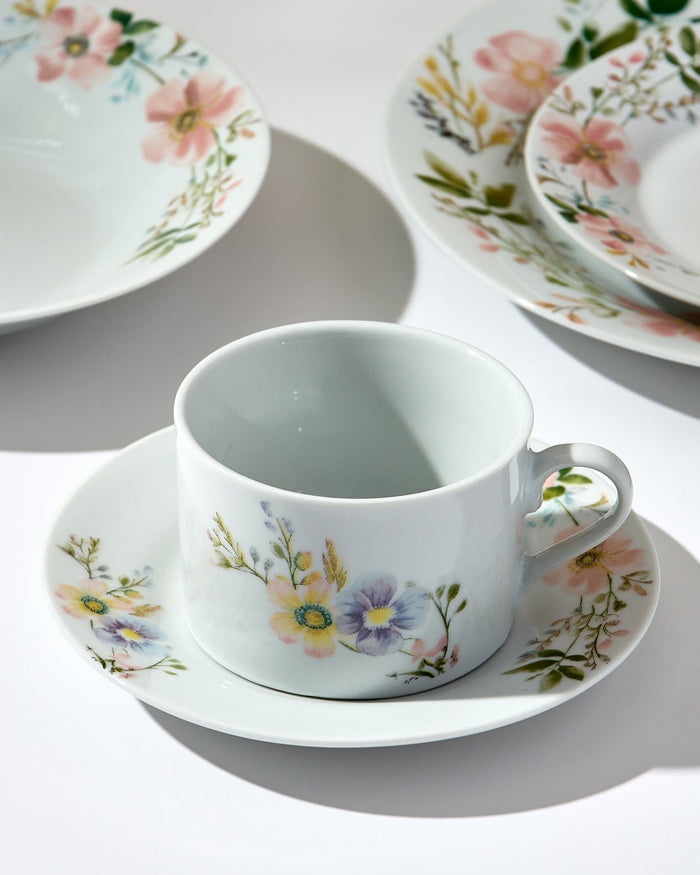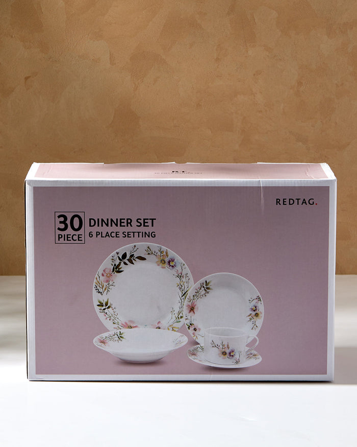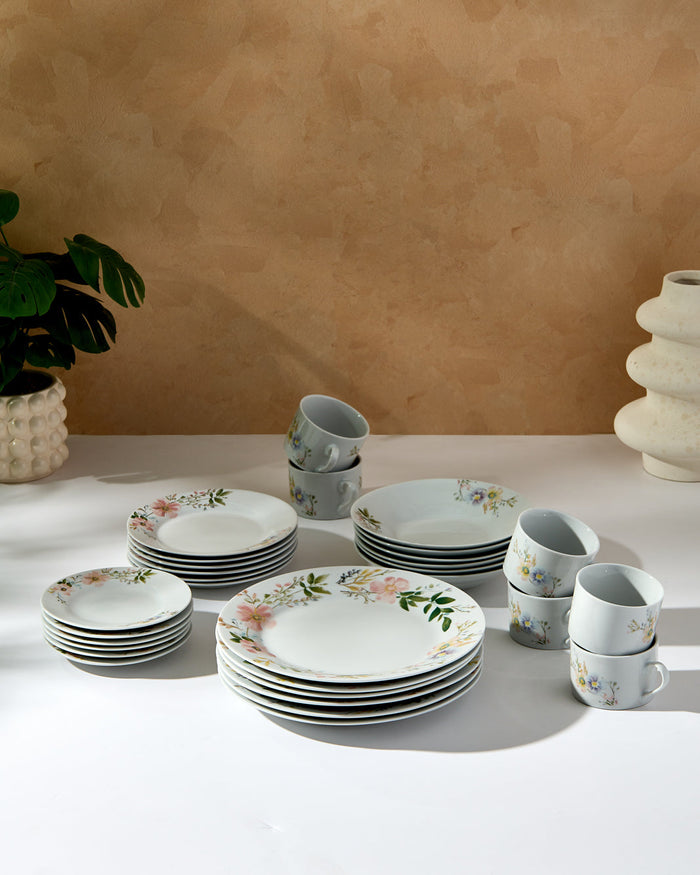 Elevate your dining experience with this elegant 30-piece dinner set featuring a delicate floral design. Perfect for serving, it includes plates, bowls, and cups with matching saucers, ideal for everyday meals or special occasions. Crafted with care to combine timeless charm and durability.