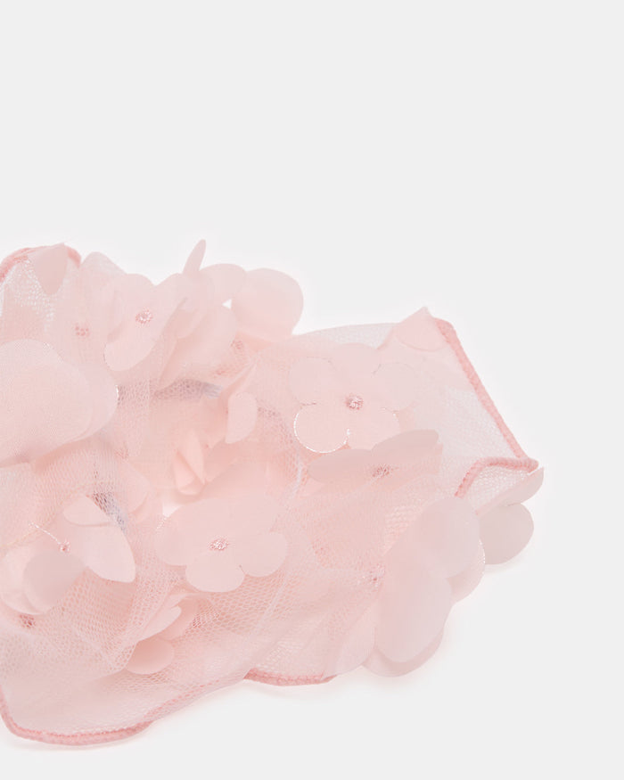 A set of two floral scrunchies crafted with delicate petals, perfect for everyday use or special occasions.