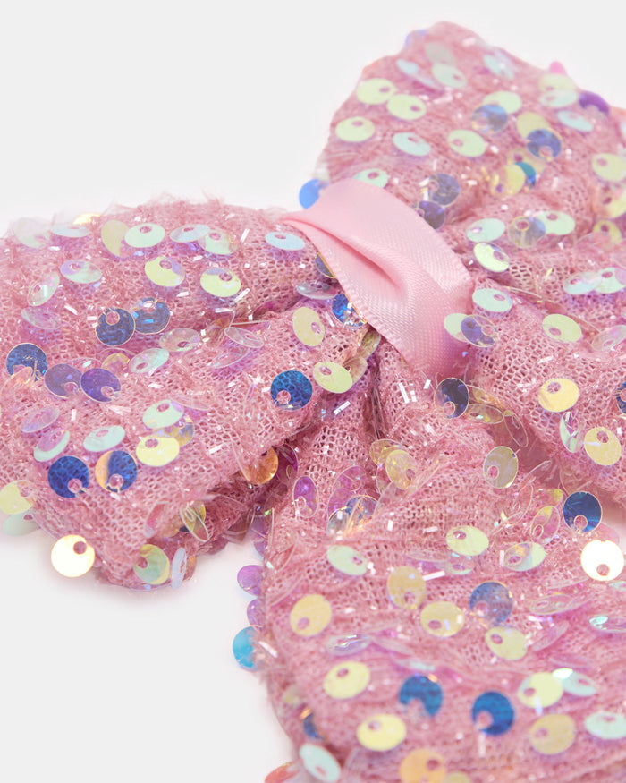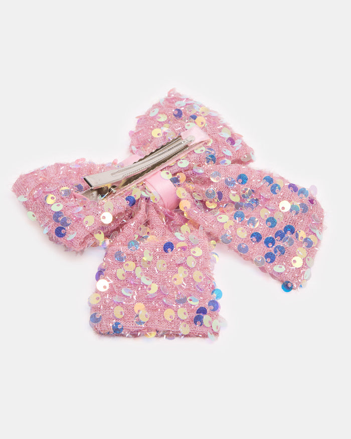 Add sparkle to her style with this soft pink sequin bow clip, a playful accessory for any occasion.