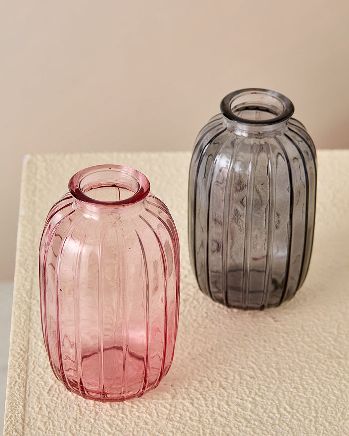 Grey And Pink Textured Vase Set (2 Piece)