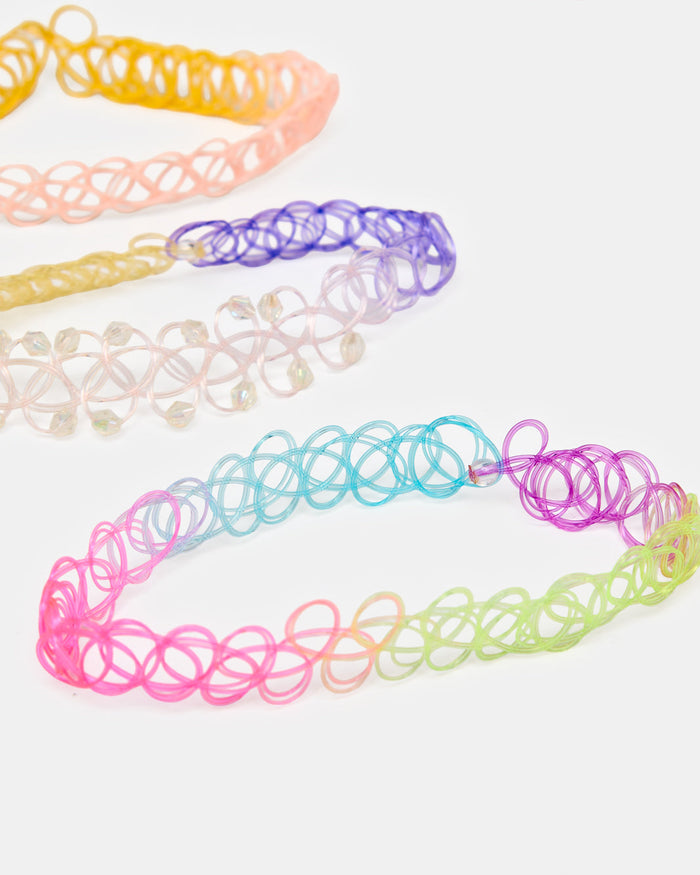 A pack of trendy chokers for girls, adding a stylish touch to any outfit.