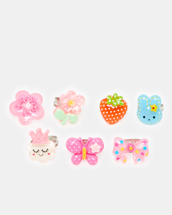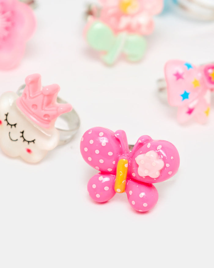 A vibrant pack of fun rings for girls, featuring cute shapes and cheerful colours. Great for mixing, matching, and sharing with friends.