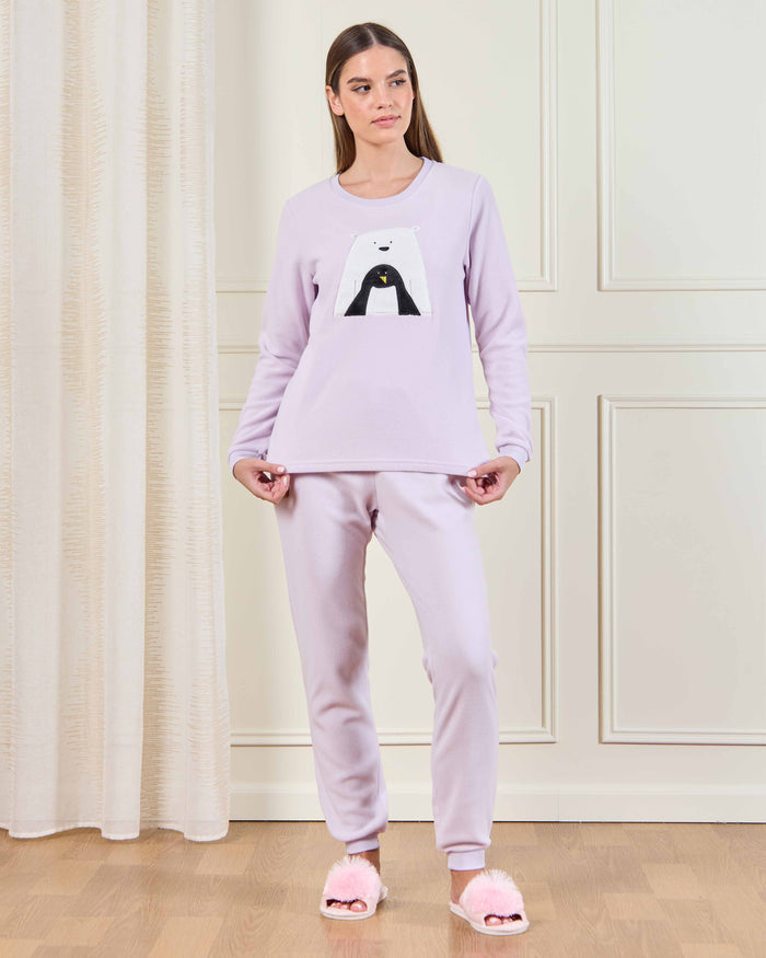 Women Lilac Penguin Print Pyjama Set (2 Piece)
