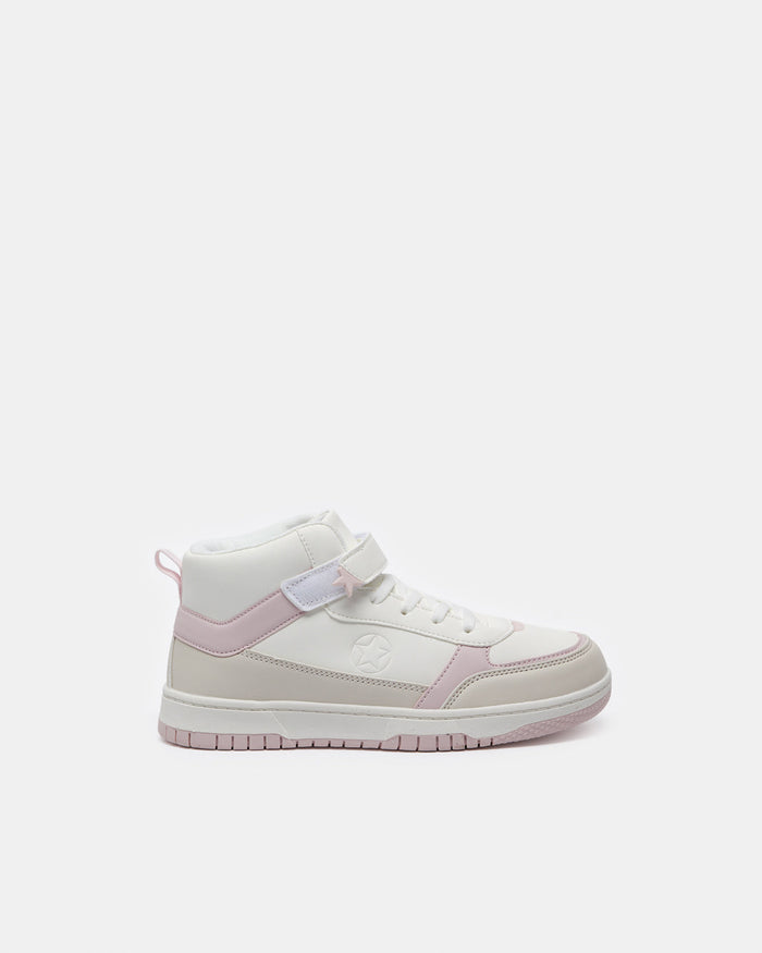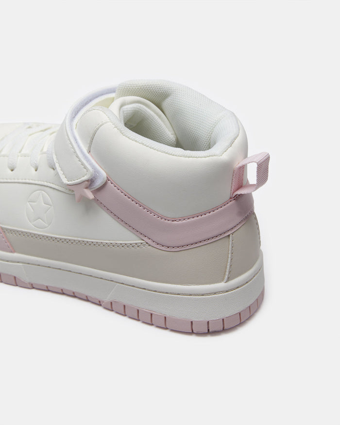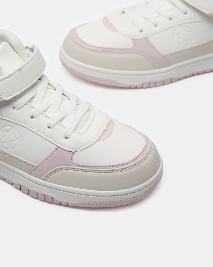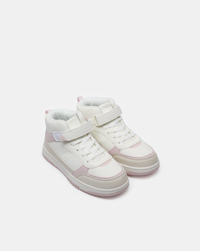 Senior Girls White Color Block High-Top Sneakers