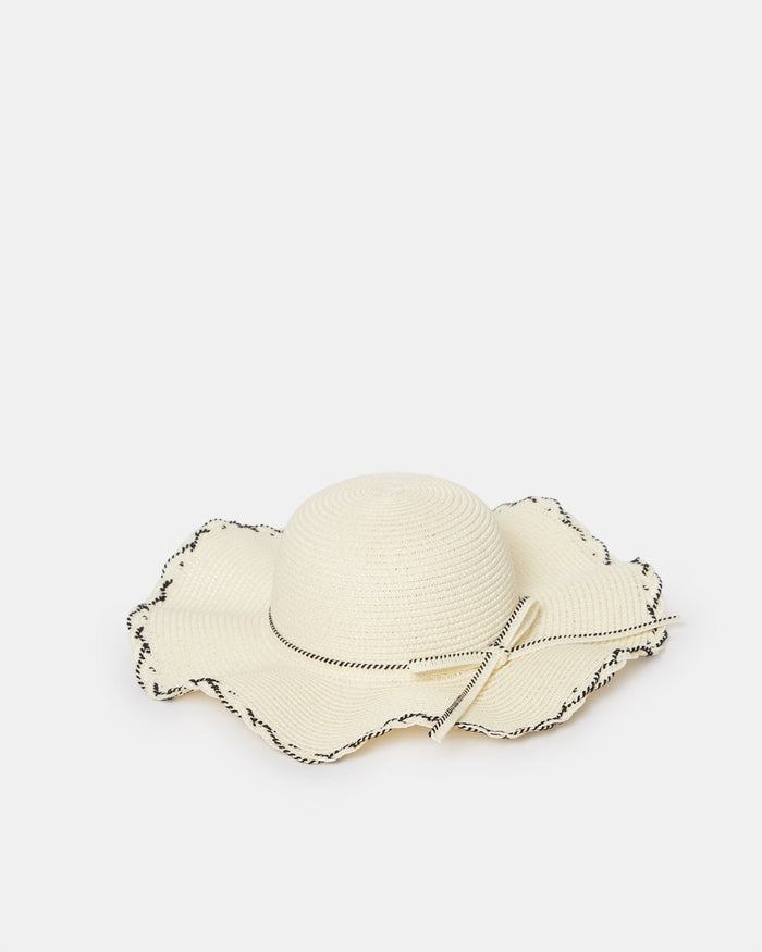 Women Beige Embellished Hat With Crochet Detail
