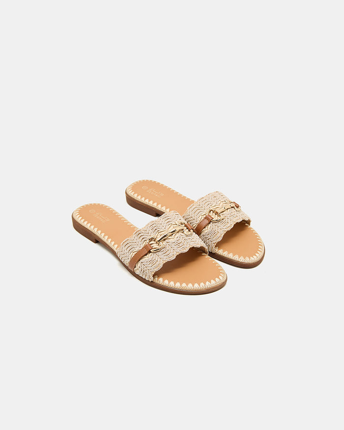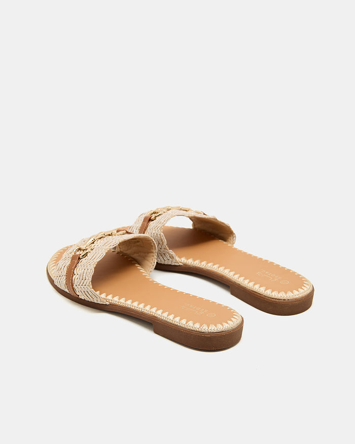 Women Beige Stitched Embellished Mule
