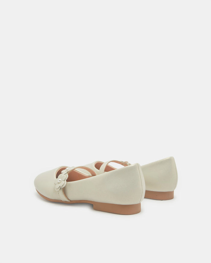 Senior Girls Beige Floral Embellished Ballerina