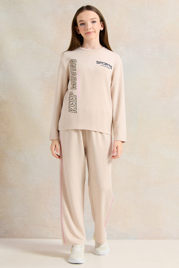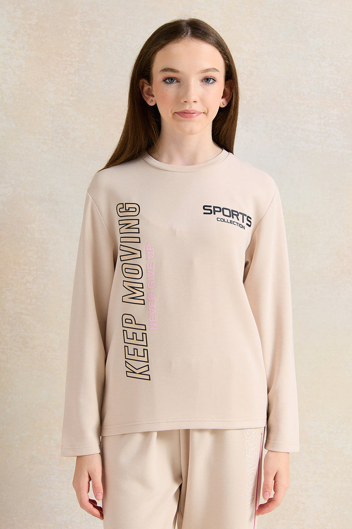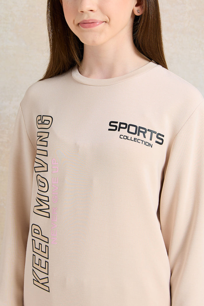 Senior Girls Beige Printed Sweatshirt