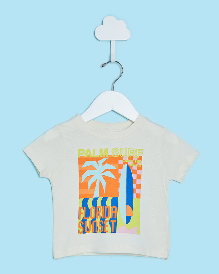 Infant Boys Beige Palm Print T-Shirt