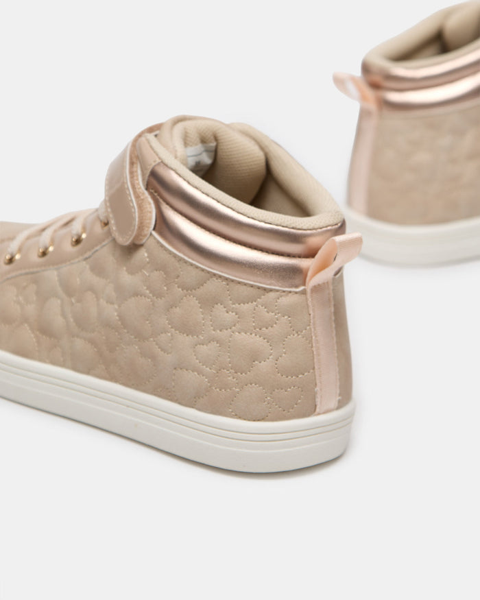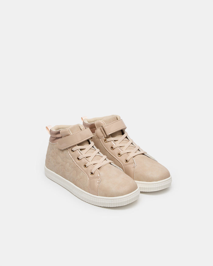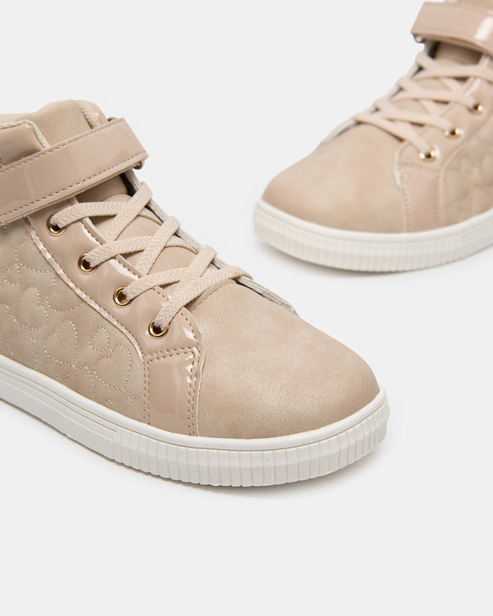 Senior Girls Beige Heart Stich High-Top Sneakers