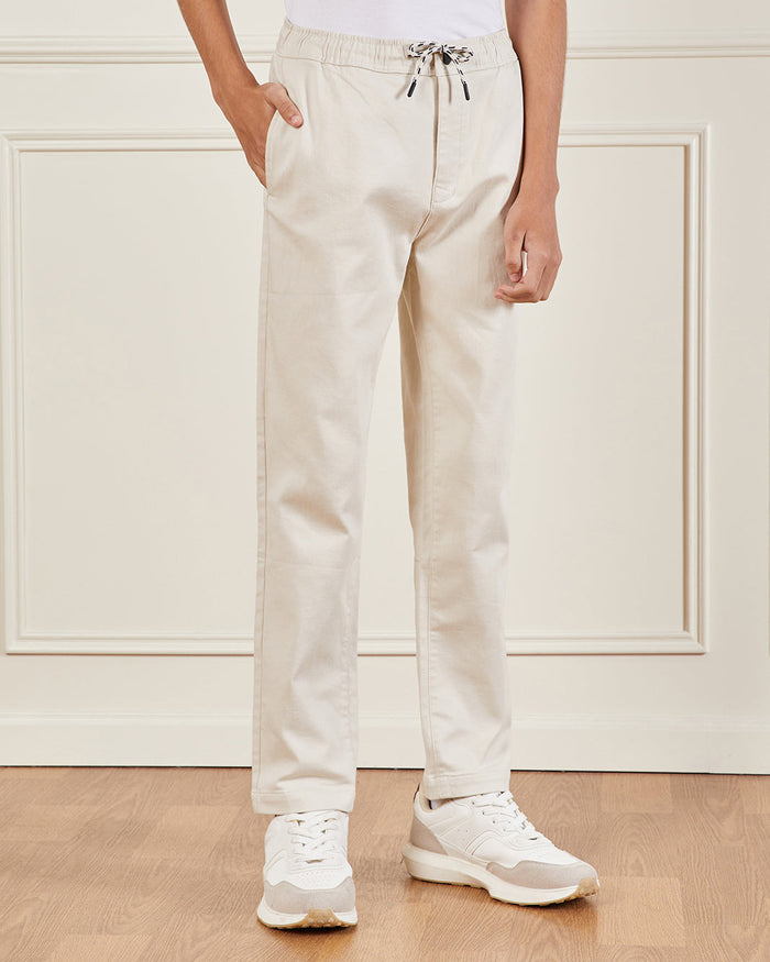 Casual and easy to wear, these beige drawstring pants for boys are perfect for everyday comfort. Designed with a relaxed fit, elastic waistband, and practical side pockets, ideal for school days or weekends out.