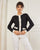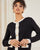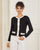 Add timeless elegance to your outfit with this black cardigan featuring contrast white trim and gold-tone buttons. A chic layering piece that combines comfort and sophistication for any occasion.