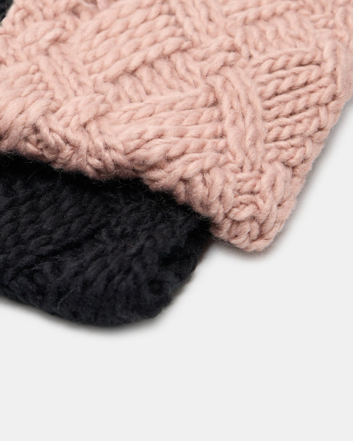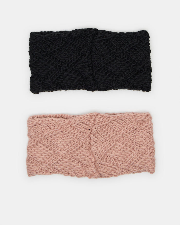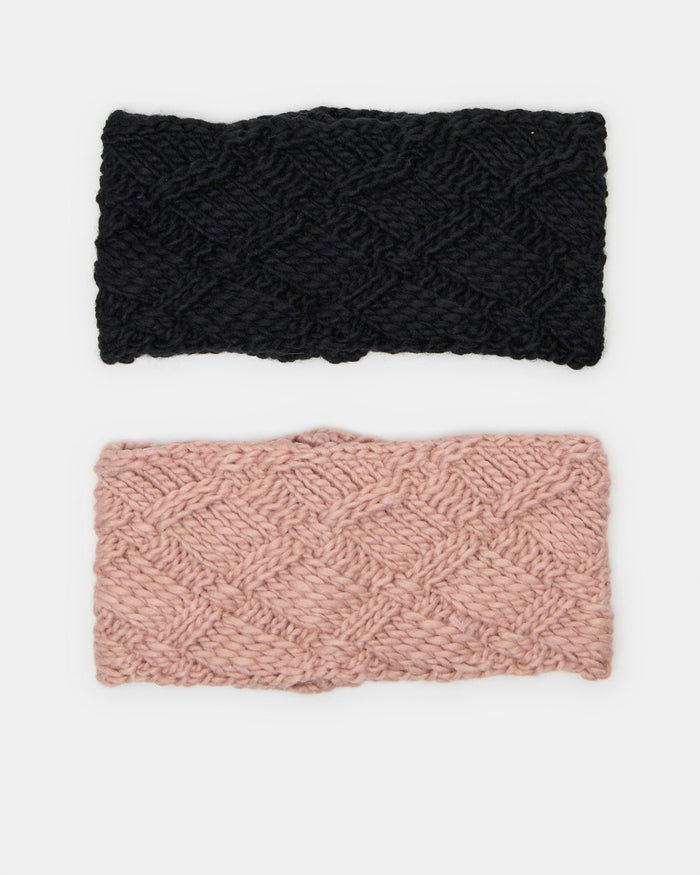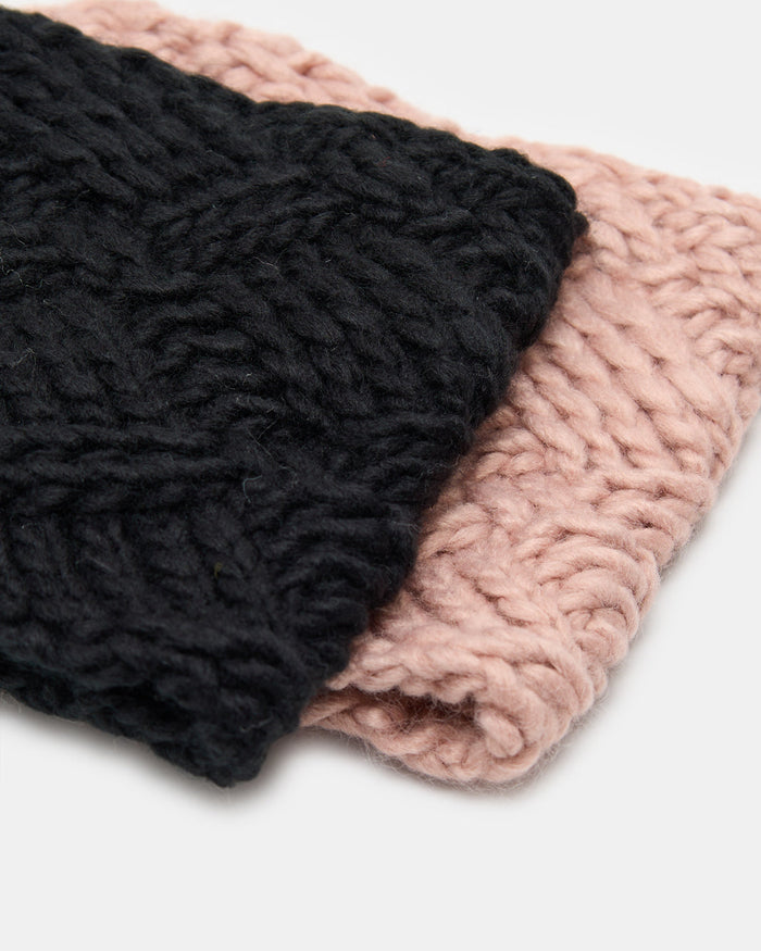 Women Black And Pink Knitted Headwarmer Set (2 Piece)
