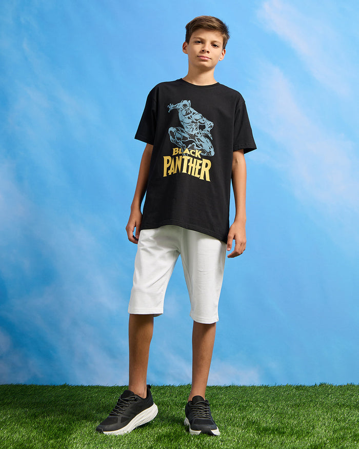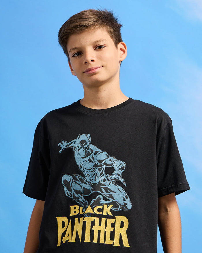 Senior Boys Black Black Panther Print T-Shirt