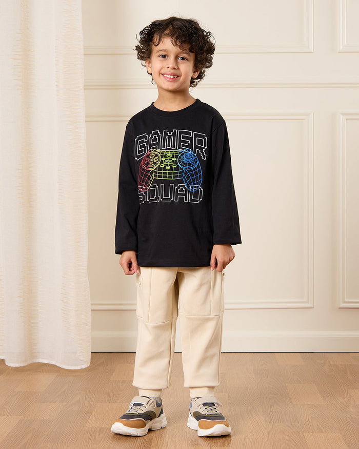 Boys Black Gamer Print Long Sleeve T-Shirt