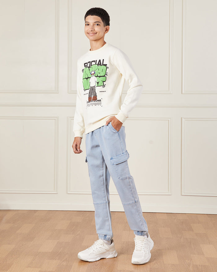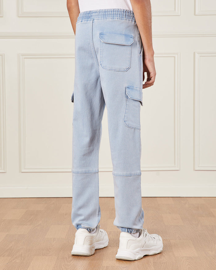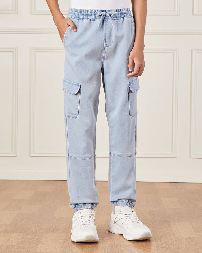 Senior Boys Blue Denim Cargo Jogger Jeans