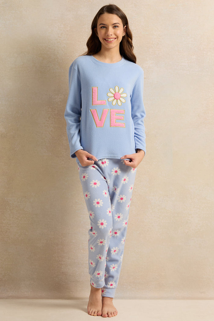 Senior Girls Blue Printed Pyjama Set (2 Piece)