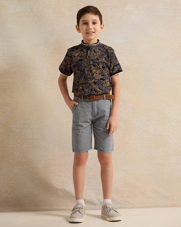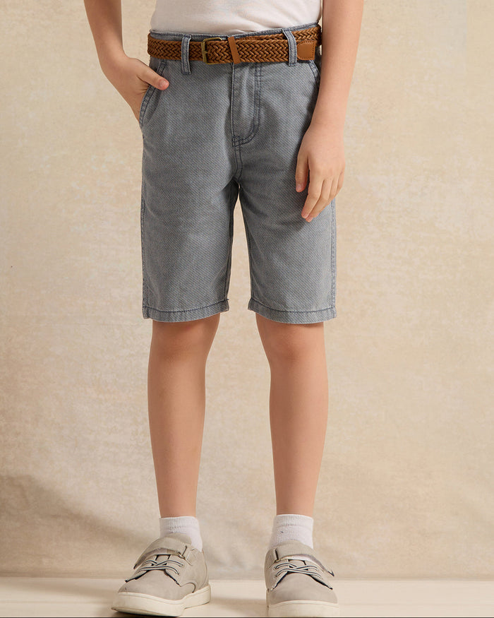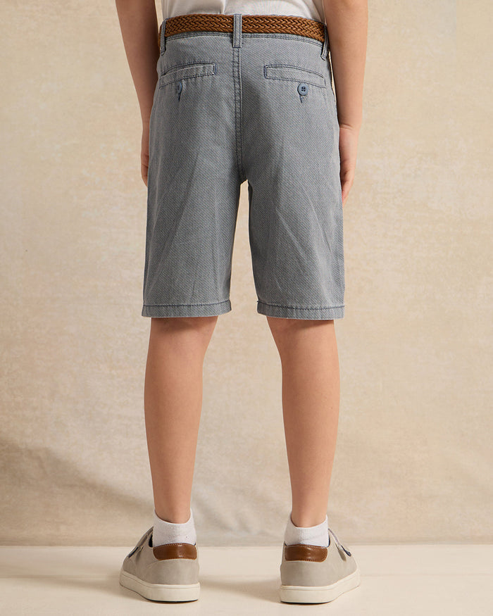 Boys Blue Printed Twill Shorts With Belt