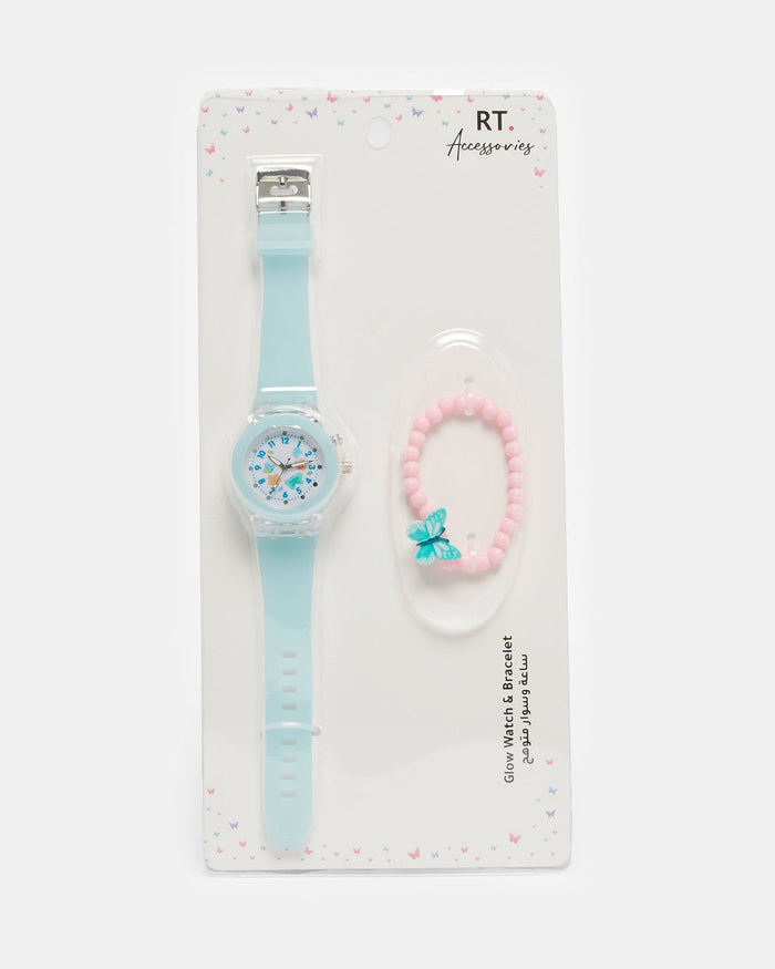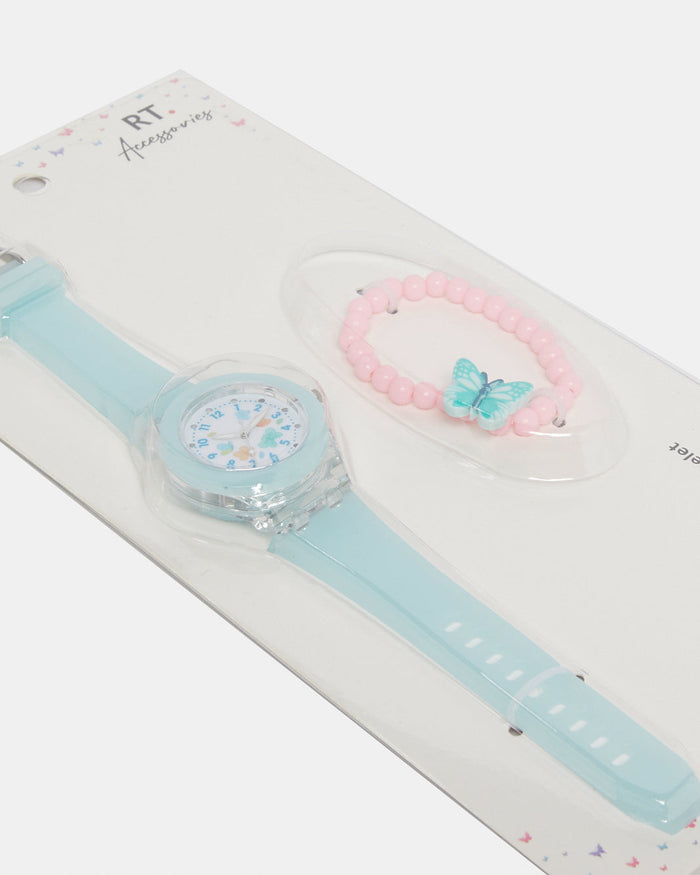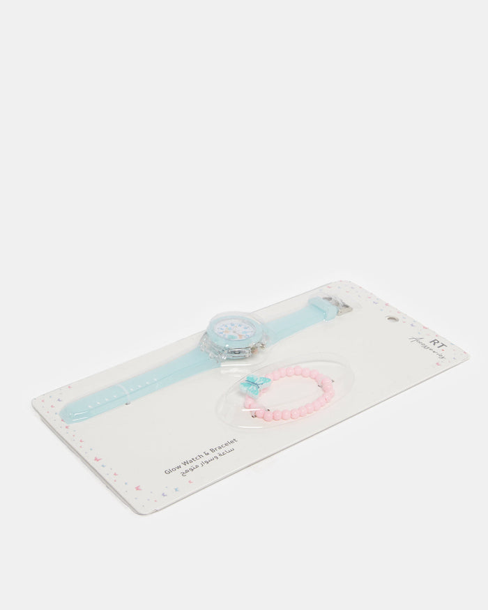 Girls Blue Watch With Pink Bracelet Set (2 Piece)