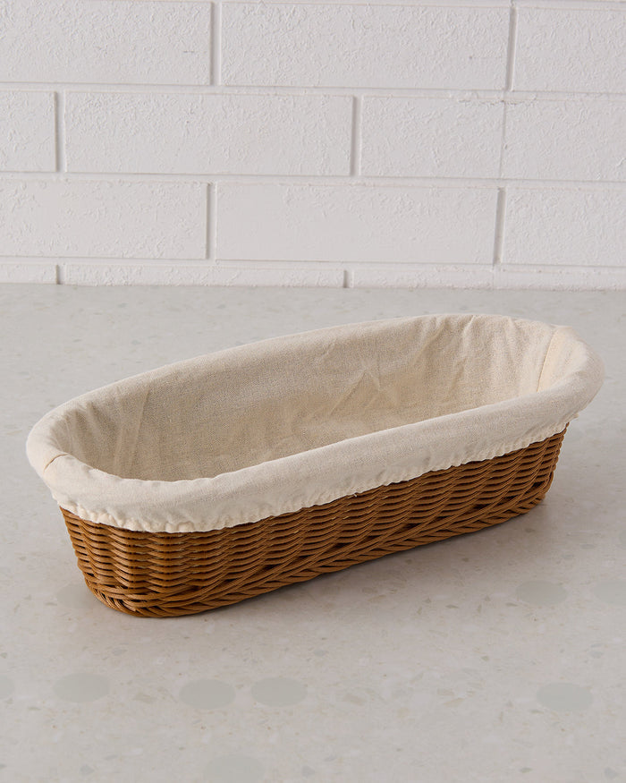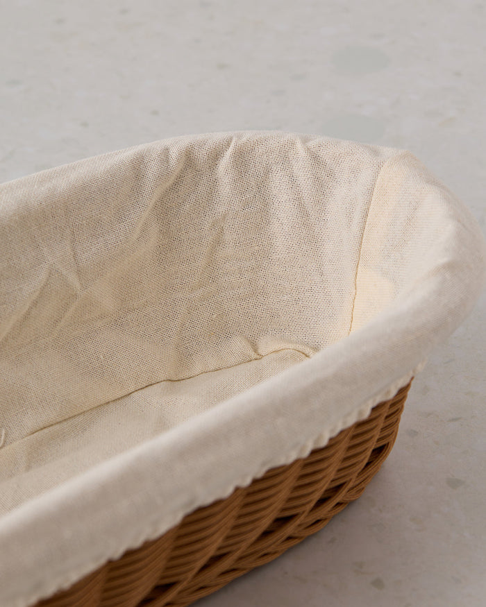 Brown Oval Woven Basket With Cloth