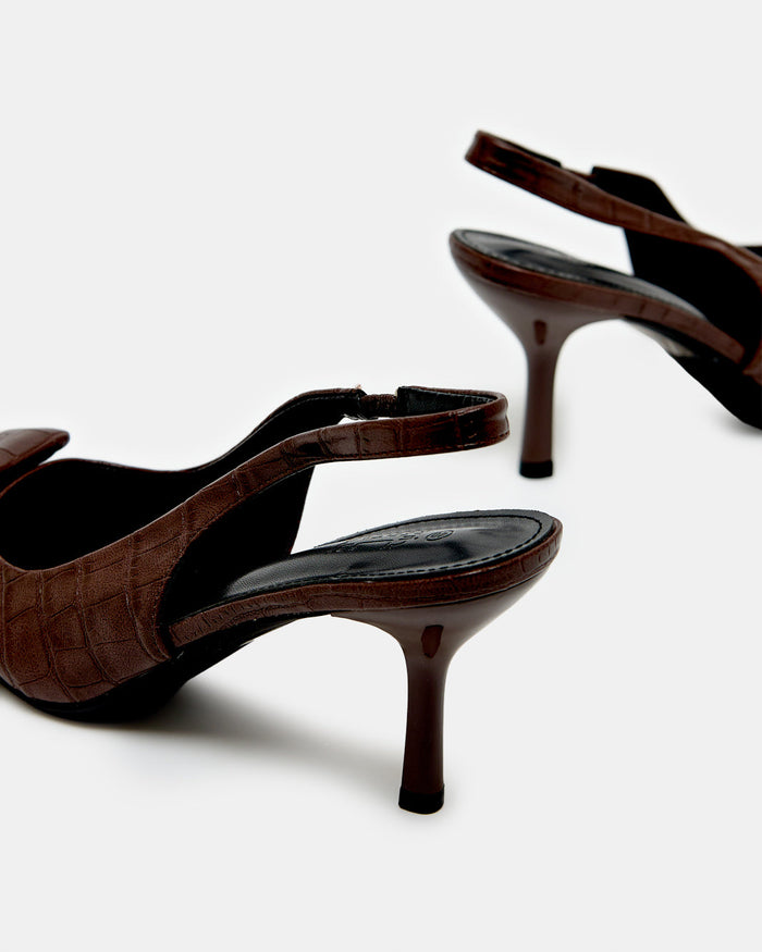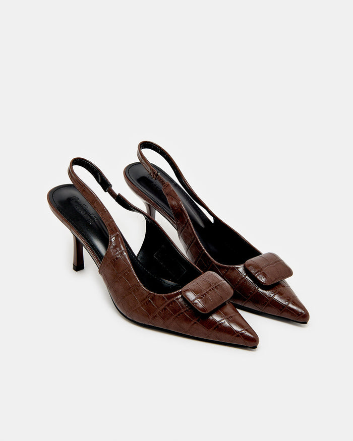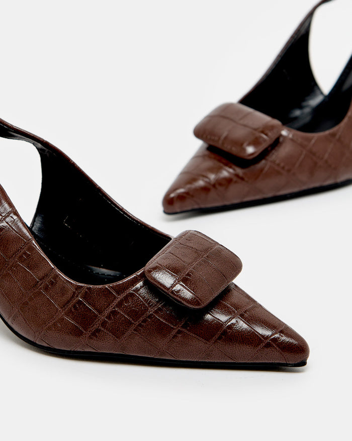 Women Brown Croc Buckle Slingback