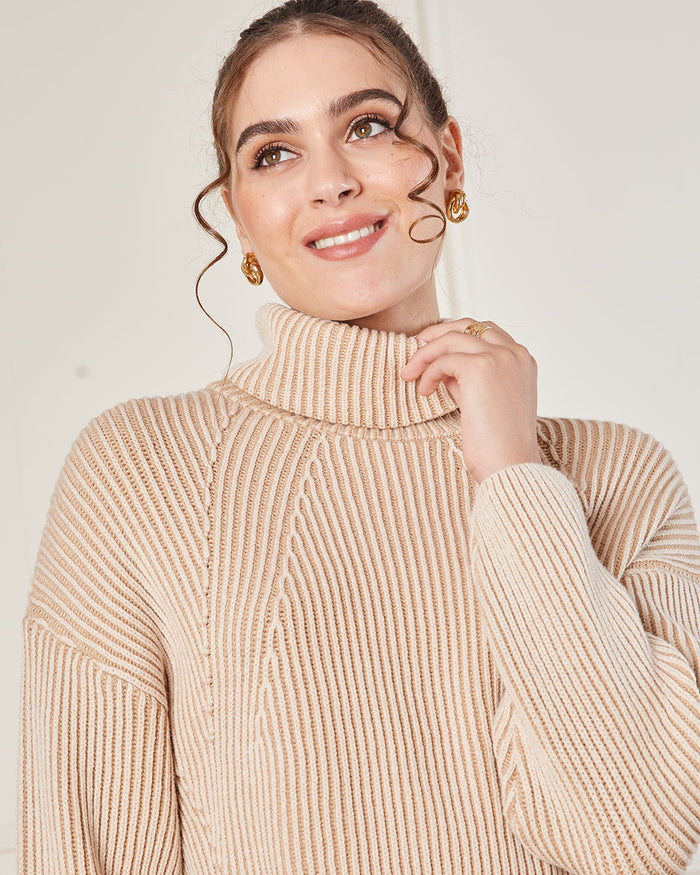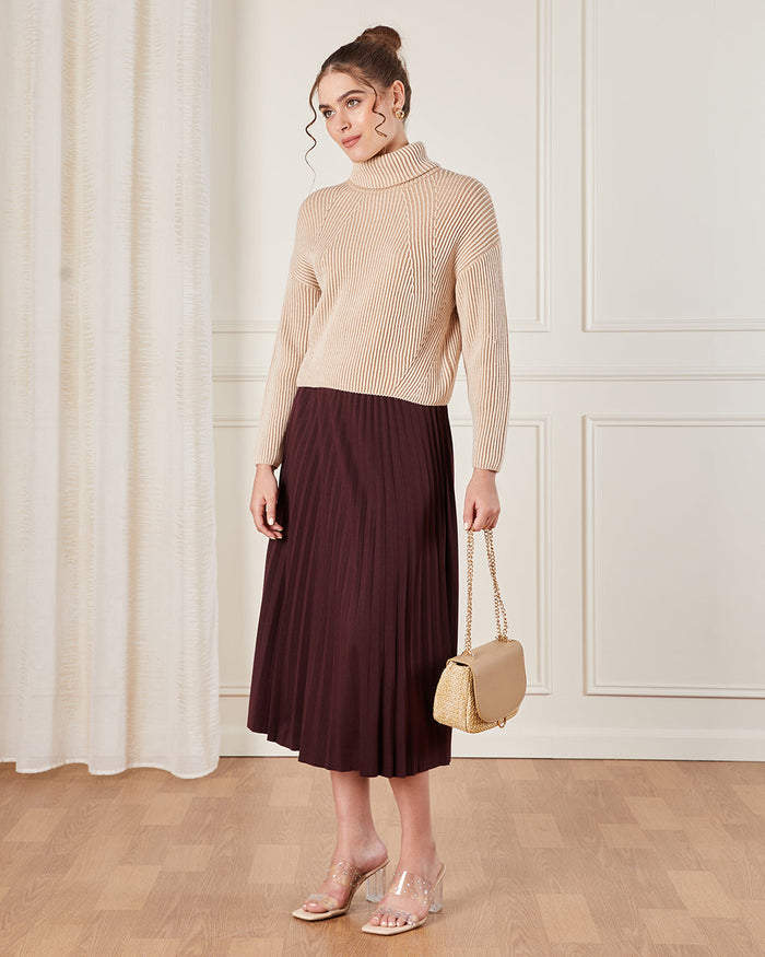 Women Brown Turtle Neck Knitted Pullover